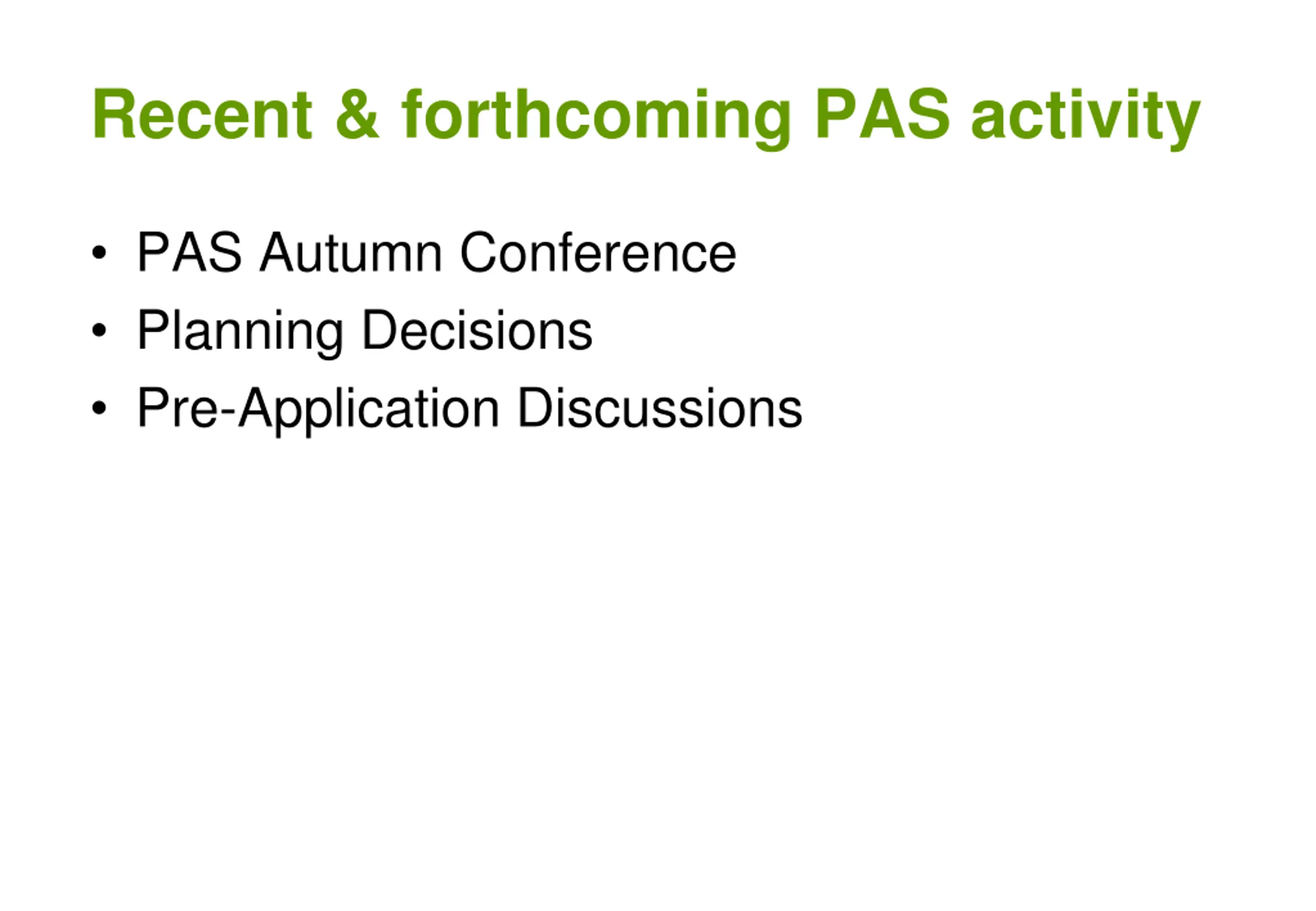 Recent & forthcoming PAS activity PAS Autumn Conference Planning Decisions Pre-Application Discussions