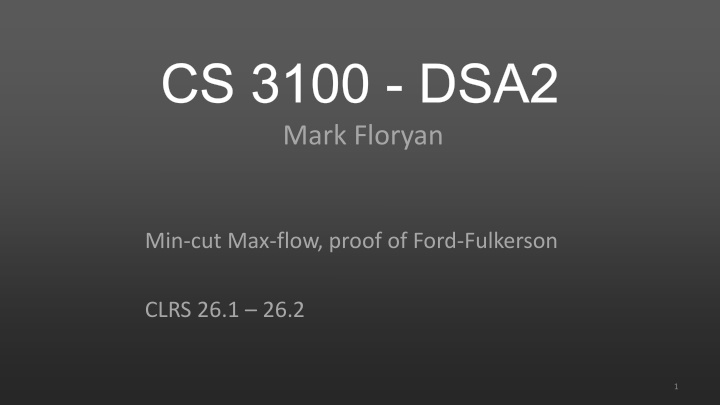 CS 3100 - DSA2 Mark Floryan Min-cut Max-flow, proof of Ford-Fulkerson CLRS 26.1 26.2 1