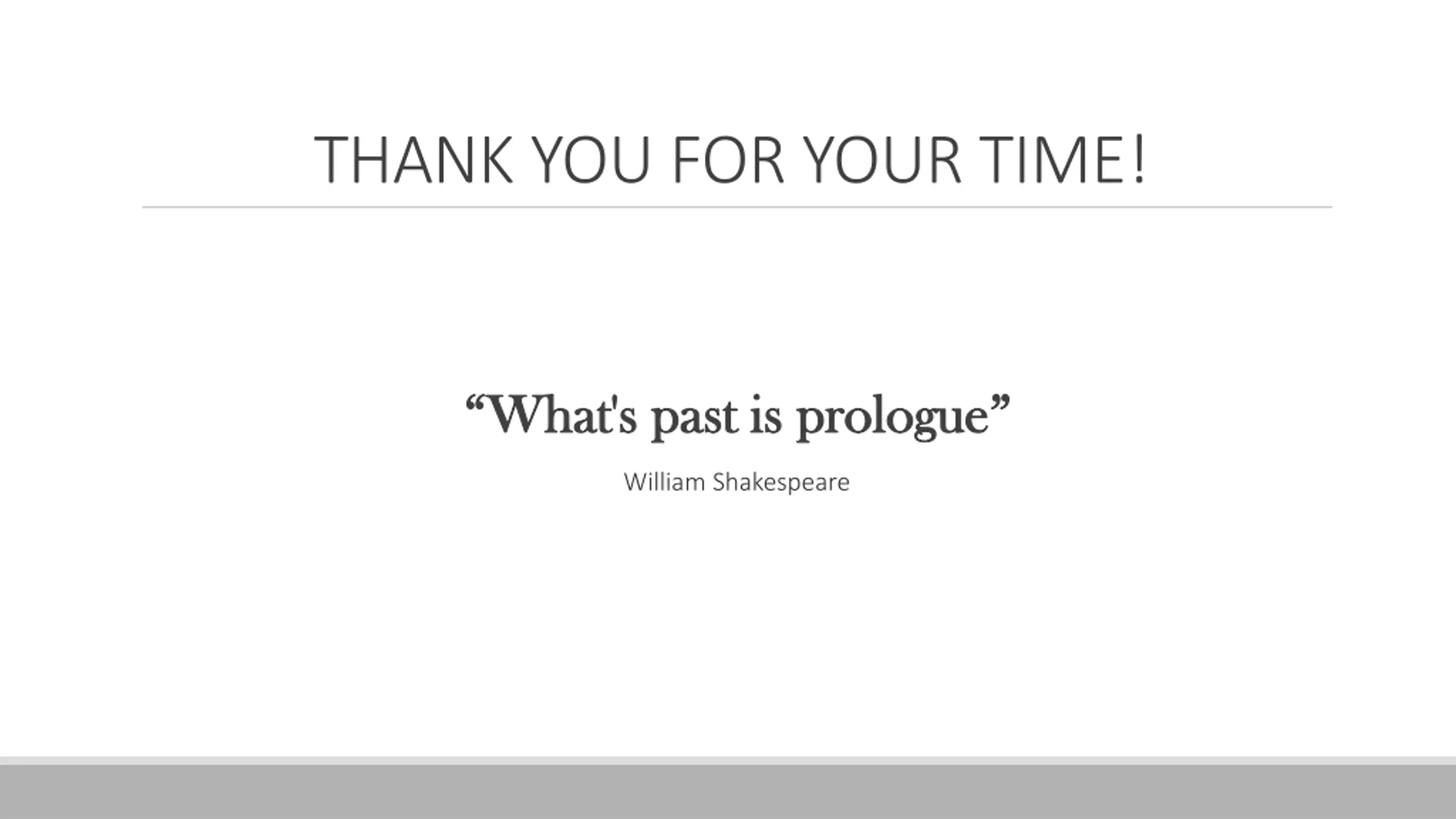 THANK YOU FOR YOUR TIME! What's past is prologue What's past is prologue William Shakespeare