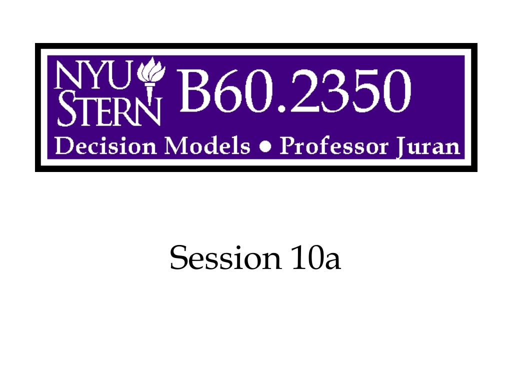 Trend Analysis Part of the variation in Y is believed to be explained by the passage of time Several convenient models available in an Excel chart Decision Models -- Prof. Juran 9