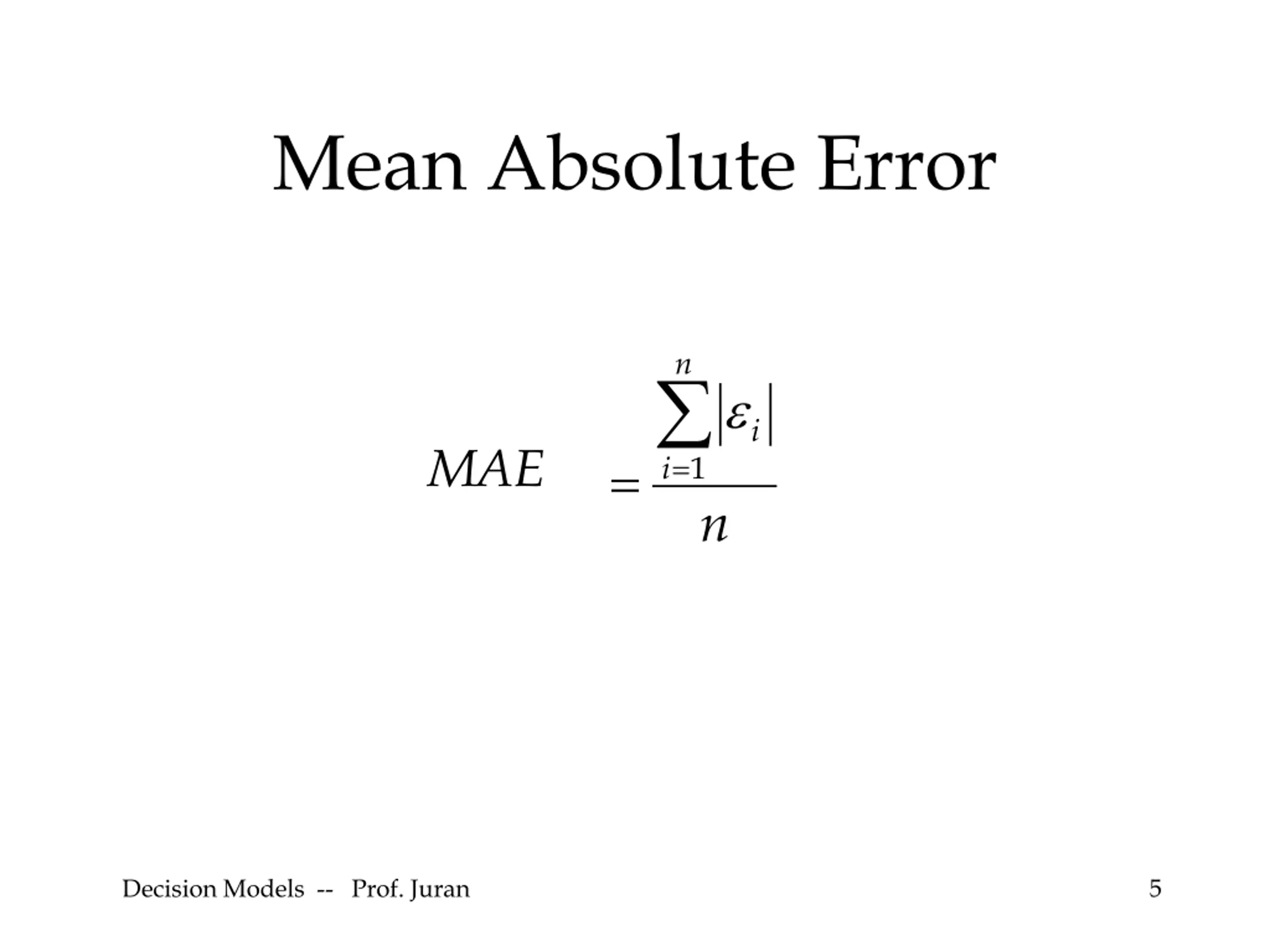 Mean Absolute Error n = i MAE = i 1 n Decision Models -- Prof. Juran 5
