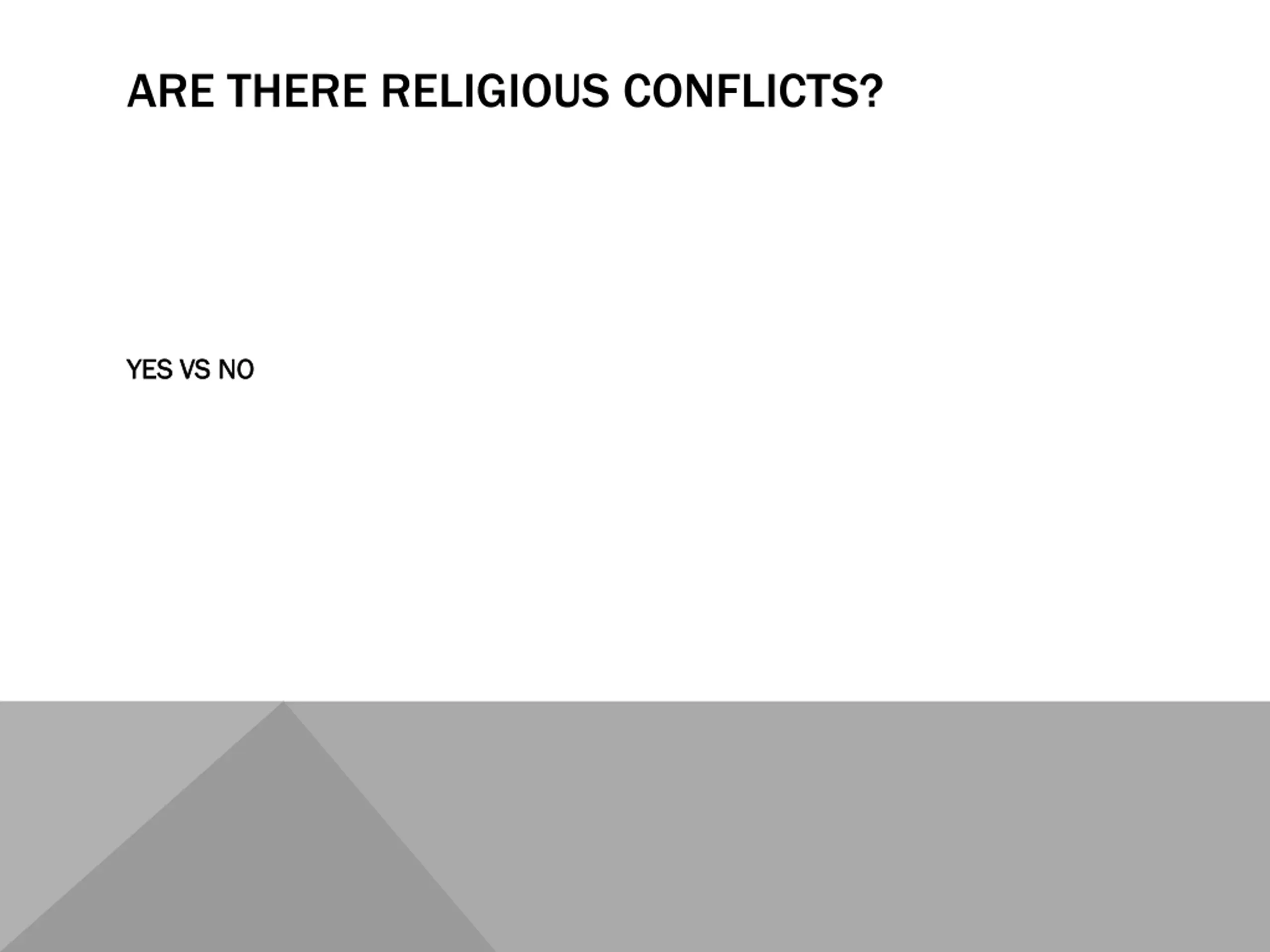 ARE THERE RELIGIOUS CONFLICTS? YES VS NO YES VS NO