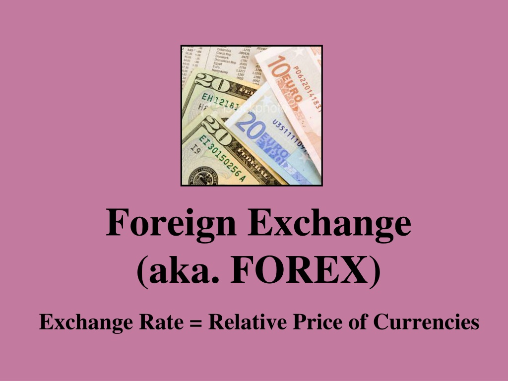Foreign Exchange (aka. FOREX) Exchange Rate = Relative Price of Currencies