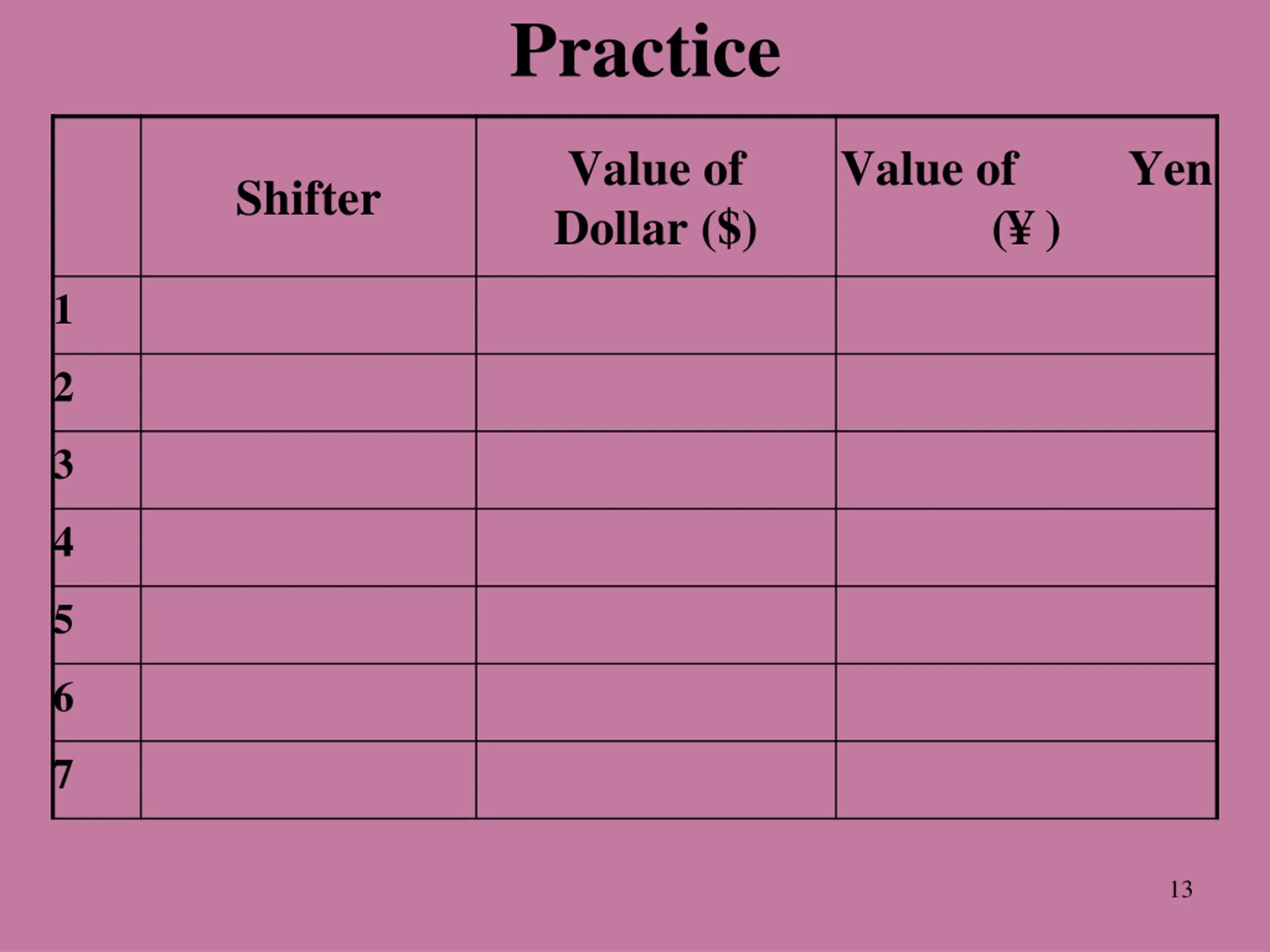 Practice Value of Dollar ($) Value of Yen ( ) Shifter 1 2 3 4 5 6 7 13