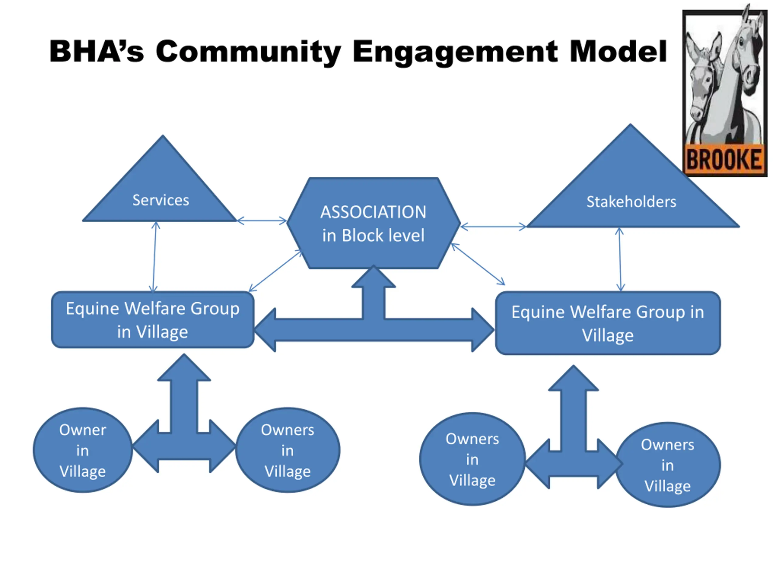 BHAs Community Engagement Model Services Stakeholders ASSOCIATION in Block level Equine Welfare Group in Village Equine Welfare Group in Village Owner in Village Owners in Village Owners in Village Owners in Village @theBrooke