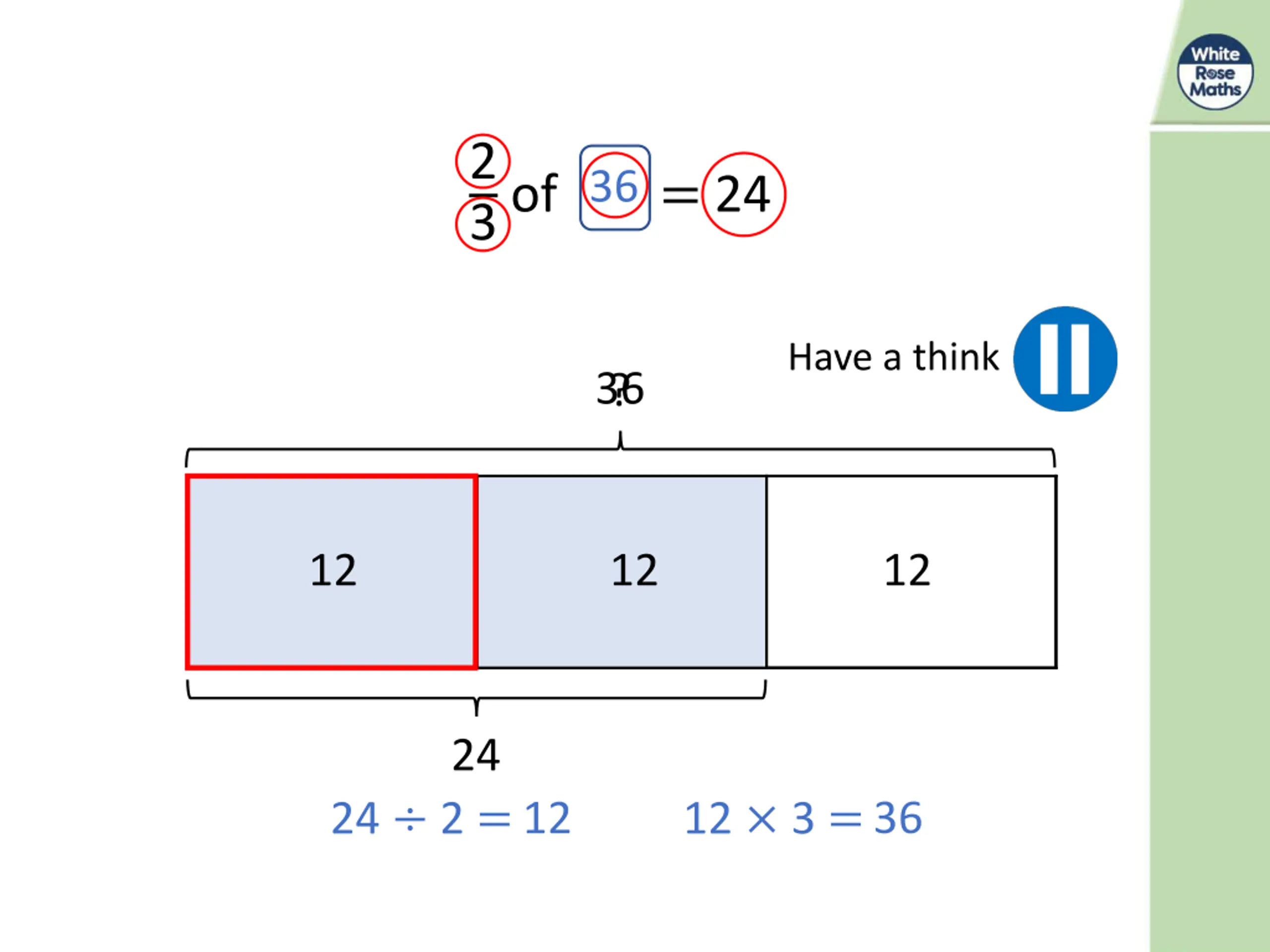 2 3 of = 24 36 Have a think 36 ? 12 12 12 24 24 2 = 12 3 = 36 12