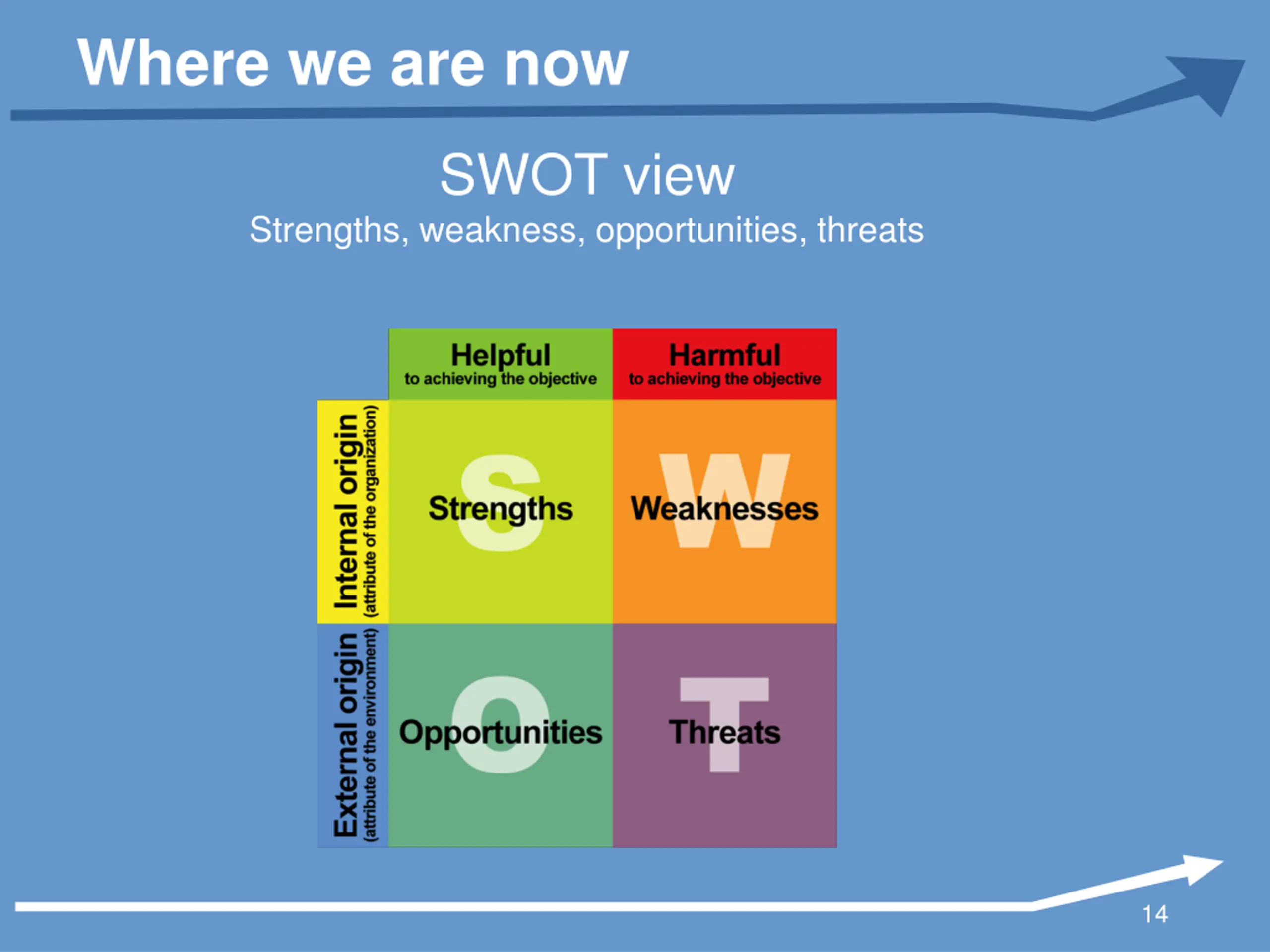 Where we are now SWOT view Strengths, weakness, opportunities, threats 14