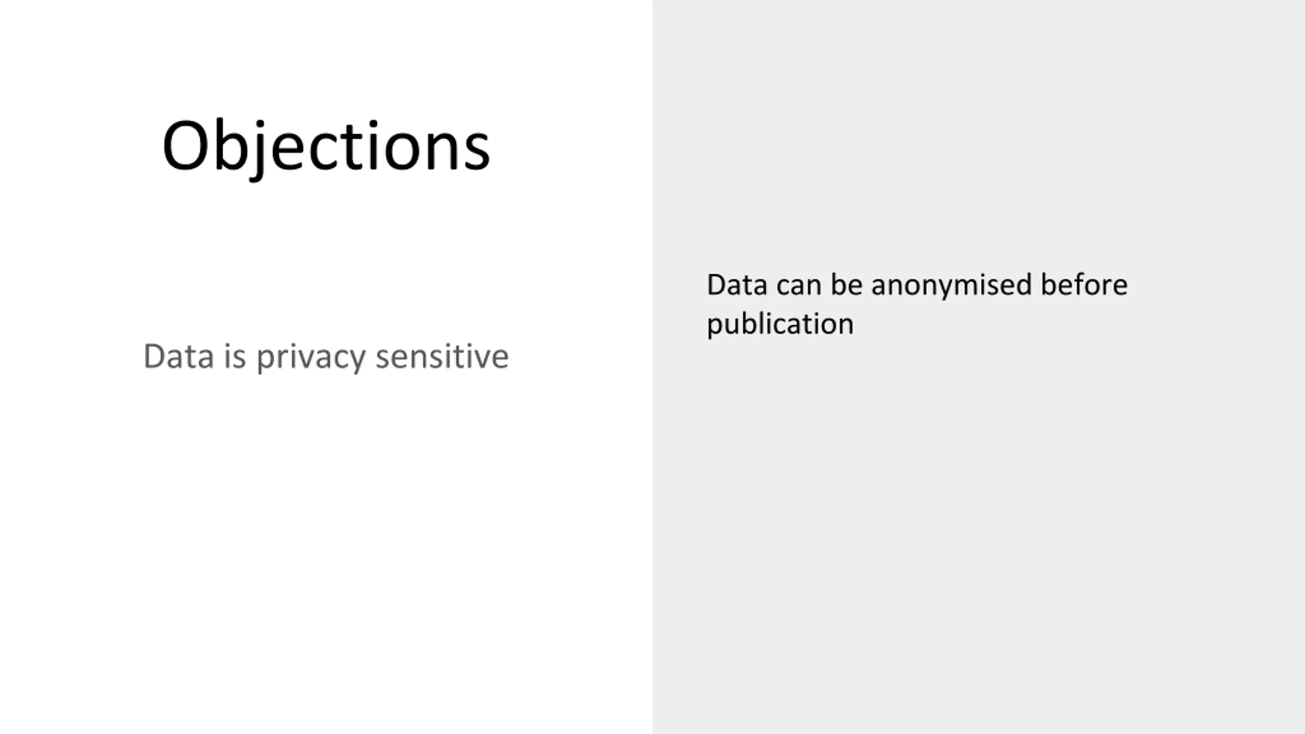Objections Data can be anonymised before publication Data is privacy sensitive