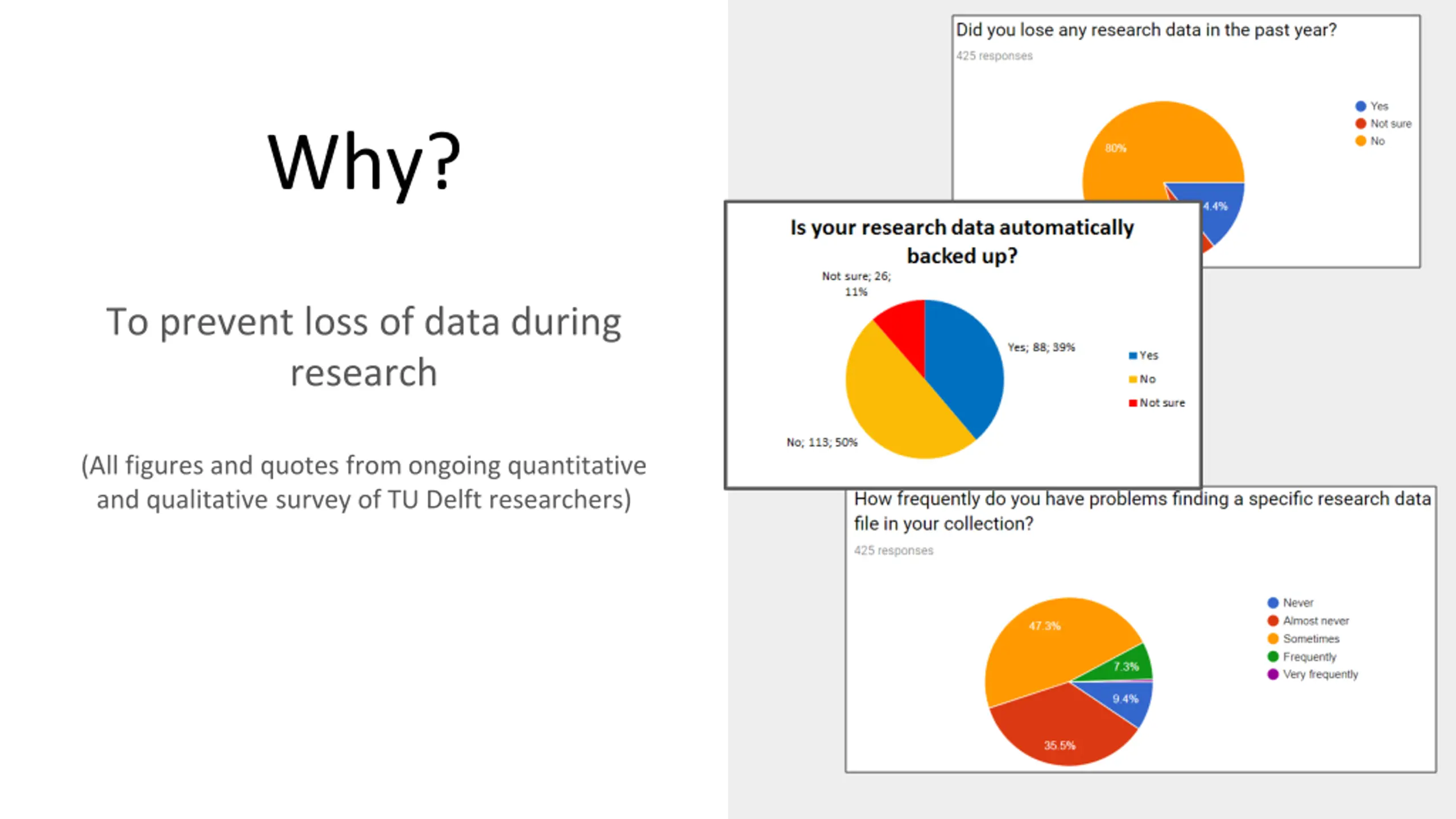 Why? To prevent loss of data during research (All figures and quotes from ongoing quantitative and qualitative survey of TU Delft researchers)