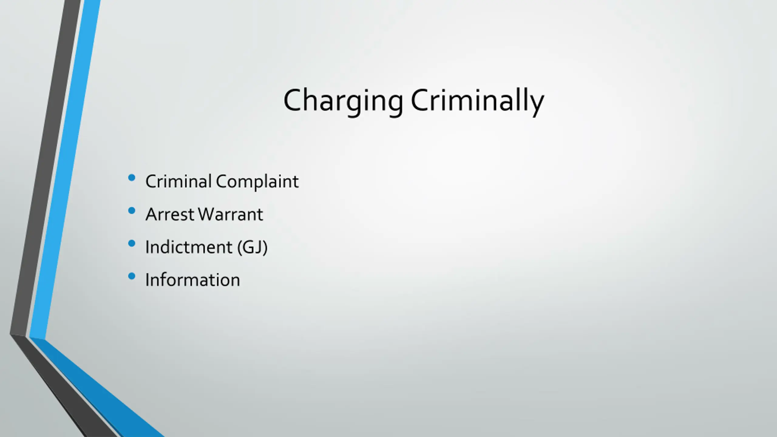 Charging Criminally Criminal Complaint Arrest Warrant Indictment (GJ) Information