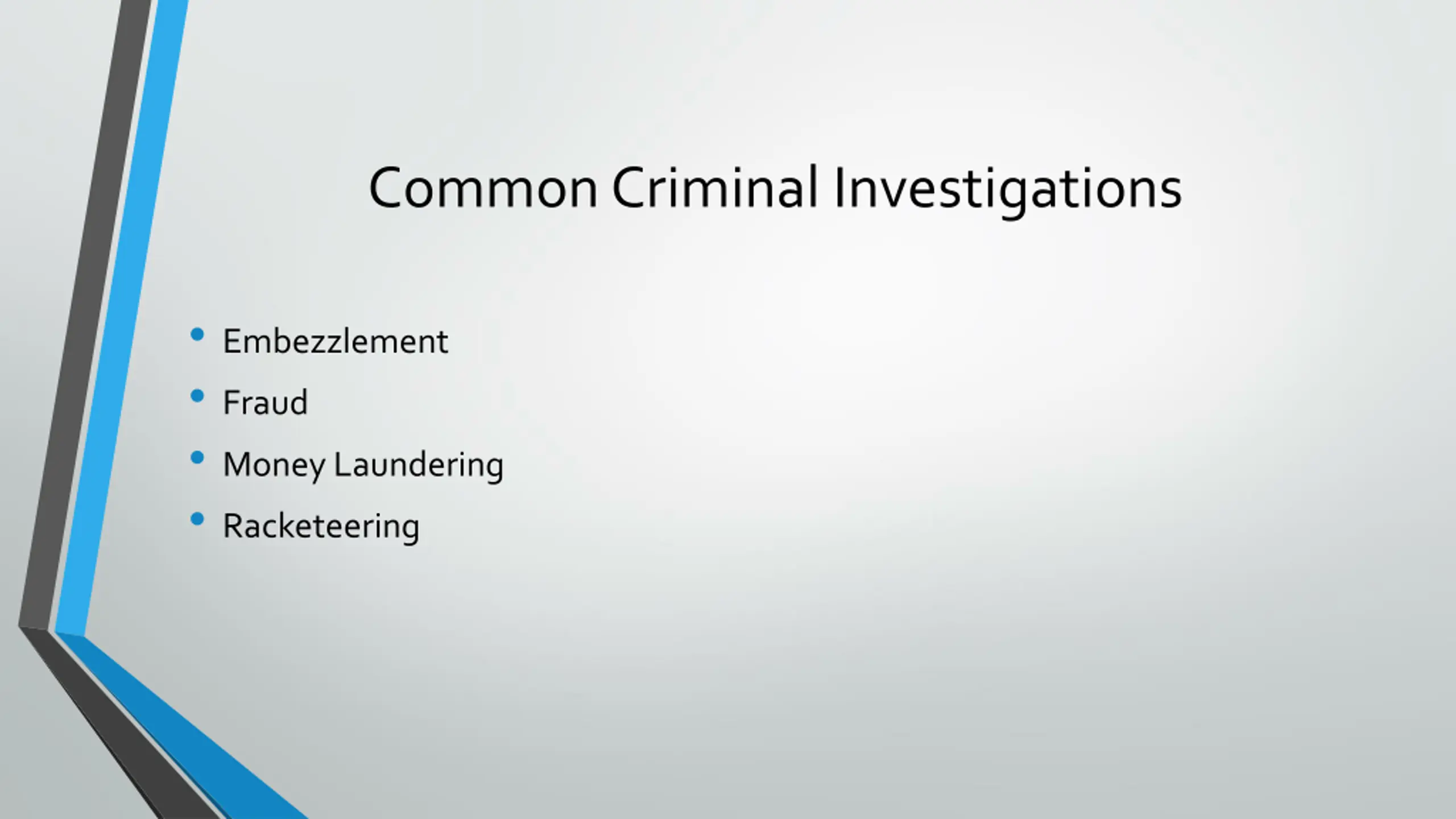 Common Criminal Investigations Embezzlement Fraud Money Laundering Racketeering