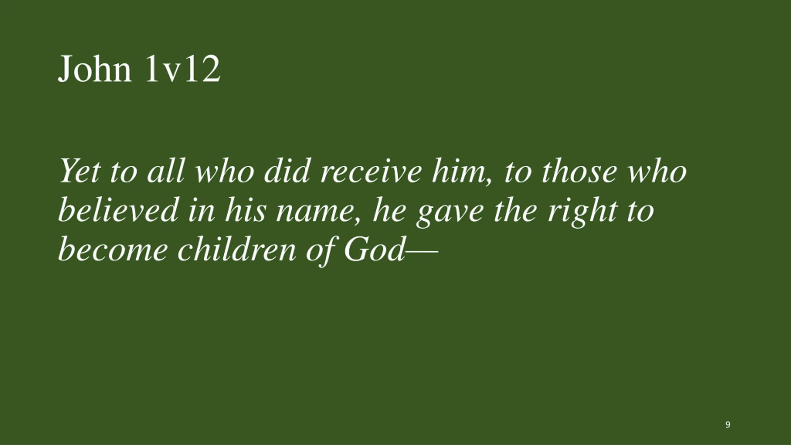 John 1v12 Yet to all who did receive him, to those who believed in his name, he gave the right to become children of God 9