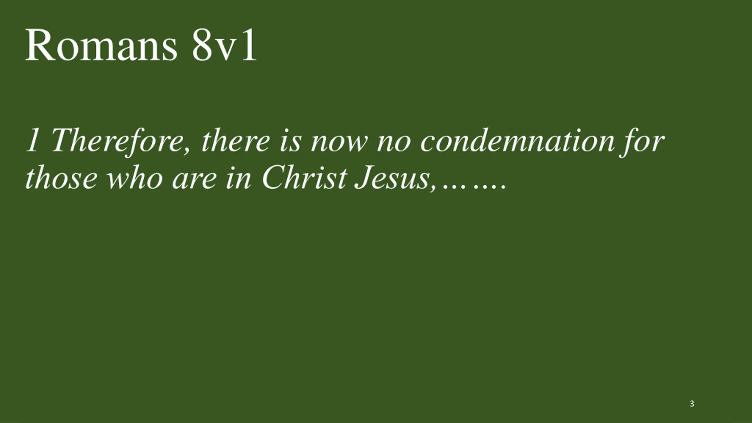 Romans 8v1 1. Therefore, there is now no condemnation for those who are in Christ Jesus 7