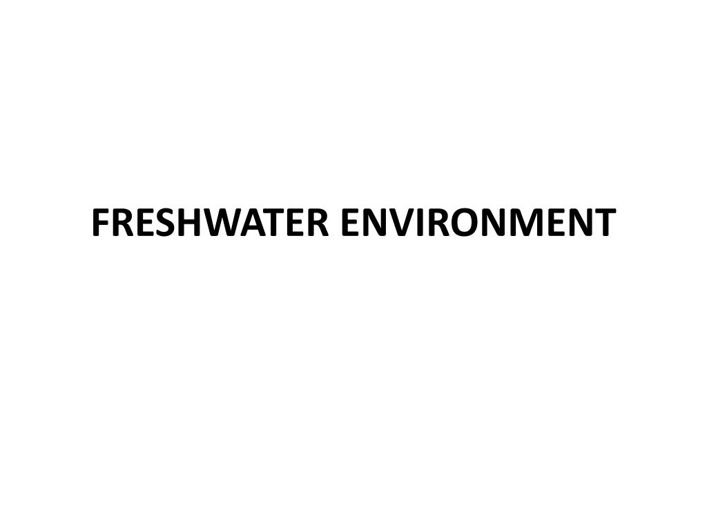 Earth - about 97.5% of the water is saline, while the remaining 2.5% is fresh water The aquatic habitats together with their communities are called aquatic ecosystems Environment with water is called as aquatic ecosystem An ecosystem refers to all the living and non-living things of plants and animals of an area and their interactions Water - mother of life; liquid gold and is the universal solvent It occupies 71% of the earth surface