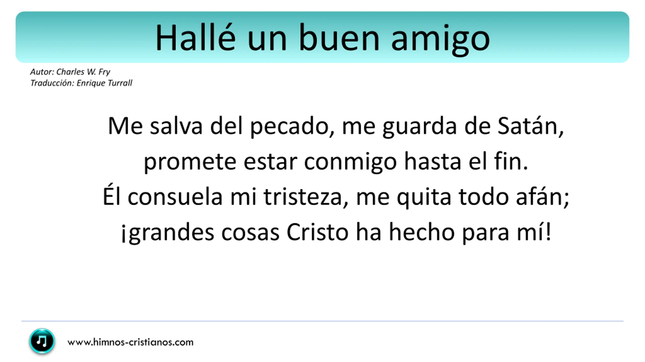 Hall un buen amigo Autor: Charles W. Fry Traducci n: Enrique Turrall Me salva del pecado, me guarda de Sat n, promete estar conmigo hasta el fin. l consuela mi tristeza, me quita todo af n; grandes cosas Cristo ha hecho para m ! www.himnos-cristianos.com