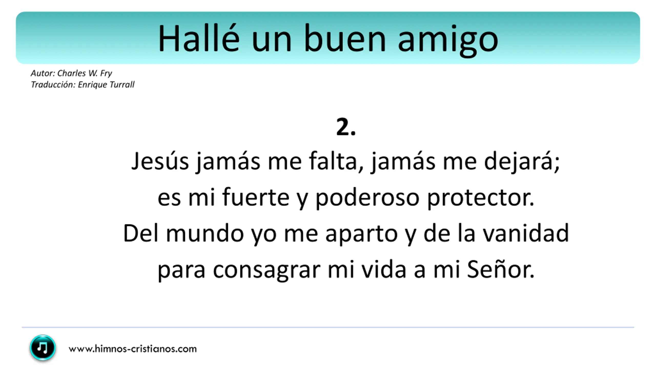 Hall un buen amigo Autor: Charles W. Fry Traducci n: Enrique Turrall 2. Jes s jam s me falta, jam s me dejar ; es mi fuerte y poderoso protector. Del mundo yo me aparto y de la vanidad para consagrar mi vida a mi Se or. www.himnos-cristianos.com
