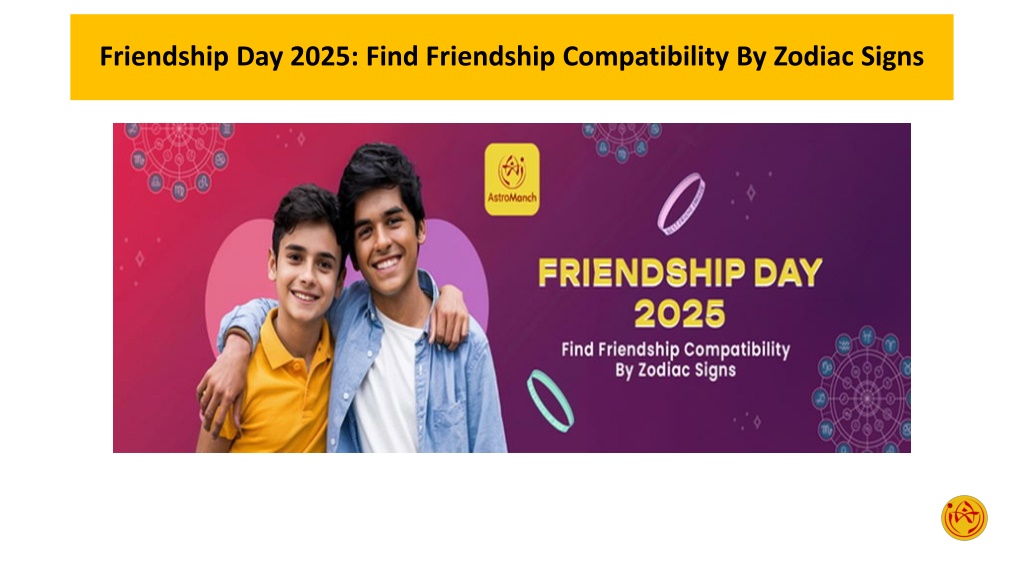 Friendship Day 2025: Find Friendship Compatibility By Zodiac Signs The first relationship you develop with someone outside your family is friendship. A Friendship with no conditions is a sacred bond that lasts for years or even decades. These friends become as important as family, who bring joy, comfort, and a sense of belonging. It is about connection, where some people click instantly and follow this relationship for a lifetime. During Friendship Day 2025, let's get interesting insights about your friends by analysing your Zodiac sign to understand the traits of building lasting friendships with the most compatible companions. You can analyse how Zodiac Signs' Friendship Compatibility on AstroManch s Free Astro Consultation, which can assist you in finding your real best friends and forging closer ties. Friendship Compatibility By Zodiac Signs Aries (March 21 - April 19): Bold Buddies Aries are fiery and vivacious, and they get along best with signs that can keep up with them. Given their shared passion for excitement and adventure, Leo, Sagittarius, and Gemini are great partners for Aries. Action, loyalty, and reciprocal motivation are the driving forces behind these friendships. Because they enjoy taking the lead, Aries people need friends who can support them without taking centre stage. Best Friends Forever:Leo, Sagittarius, Gemini Taurus (April 20 - May 20): Loyal Companions If you have a Taurean friend, it means you are partnering with a reliable, grounded friend who loves deep and meaningful friendships. They have the strongest bonds with Virgo, Capricorn, and Cancer, which are signs that value mutual respect and emotional depth. Tauruses are trustworthy and caring friends in any situation because they value loyalty and consistency. Best Friends Forever:Virgo, Capricorn, Cancer