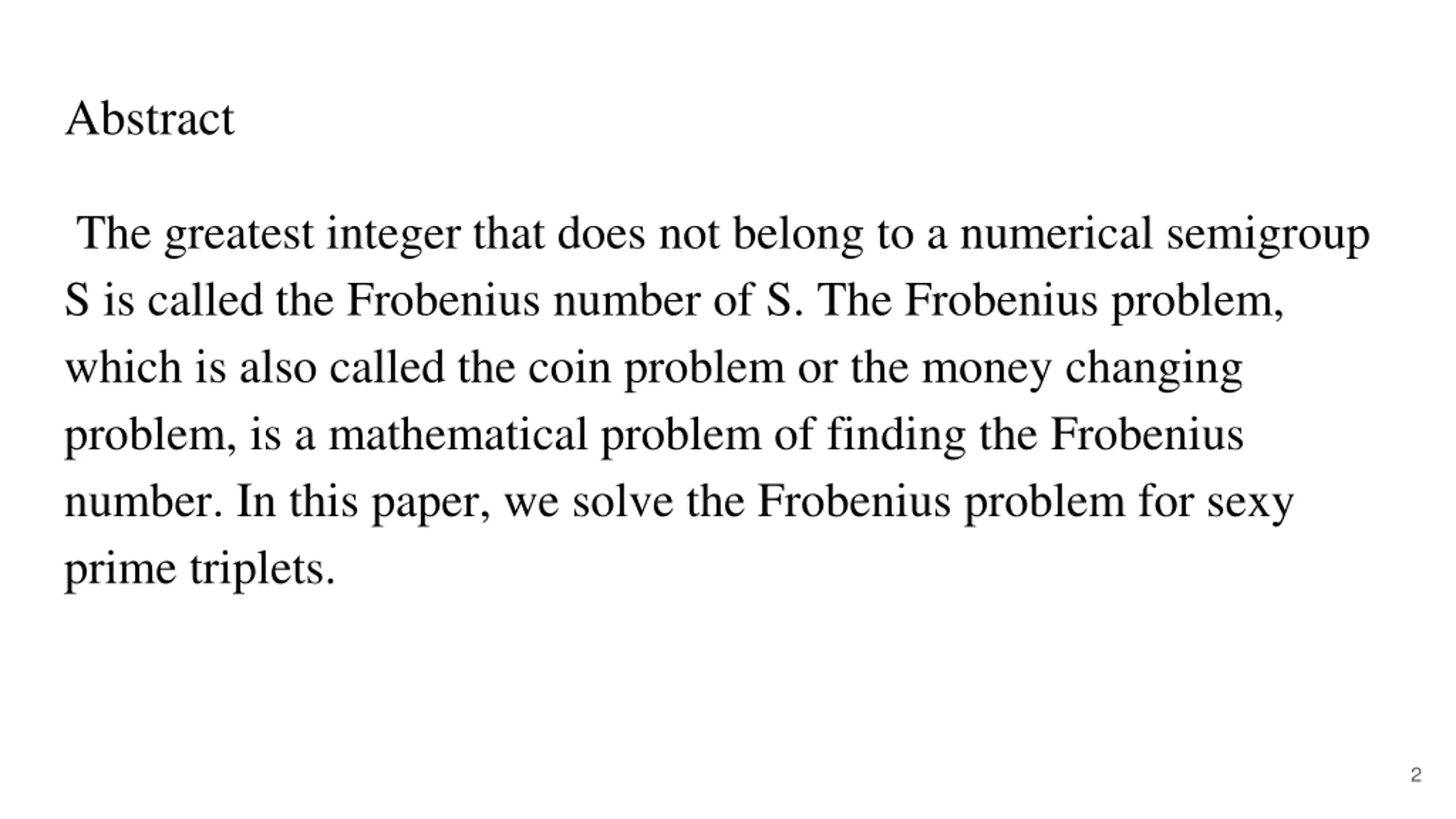 The Frobenius problems for Sexy Prime Triplets WonTae Hwang, Kyunghwan Song Int. J. Math. Comput. Sci, (2023), 18, 321-333. Presenter: Hsin-Chang Yu Date: June 11, 2024
