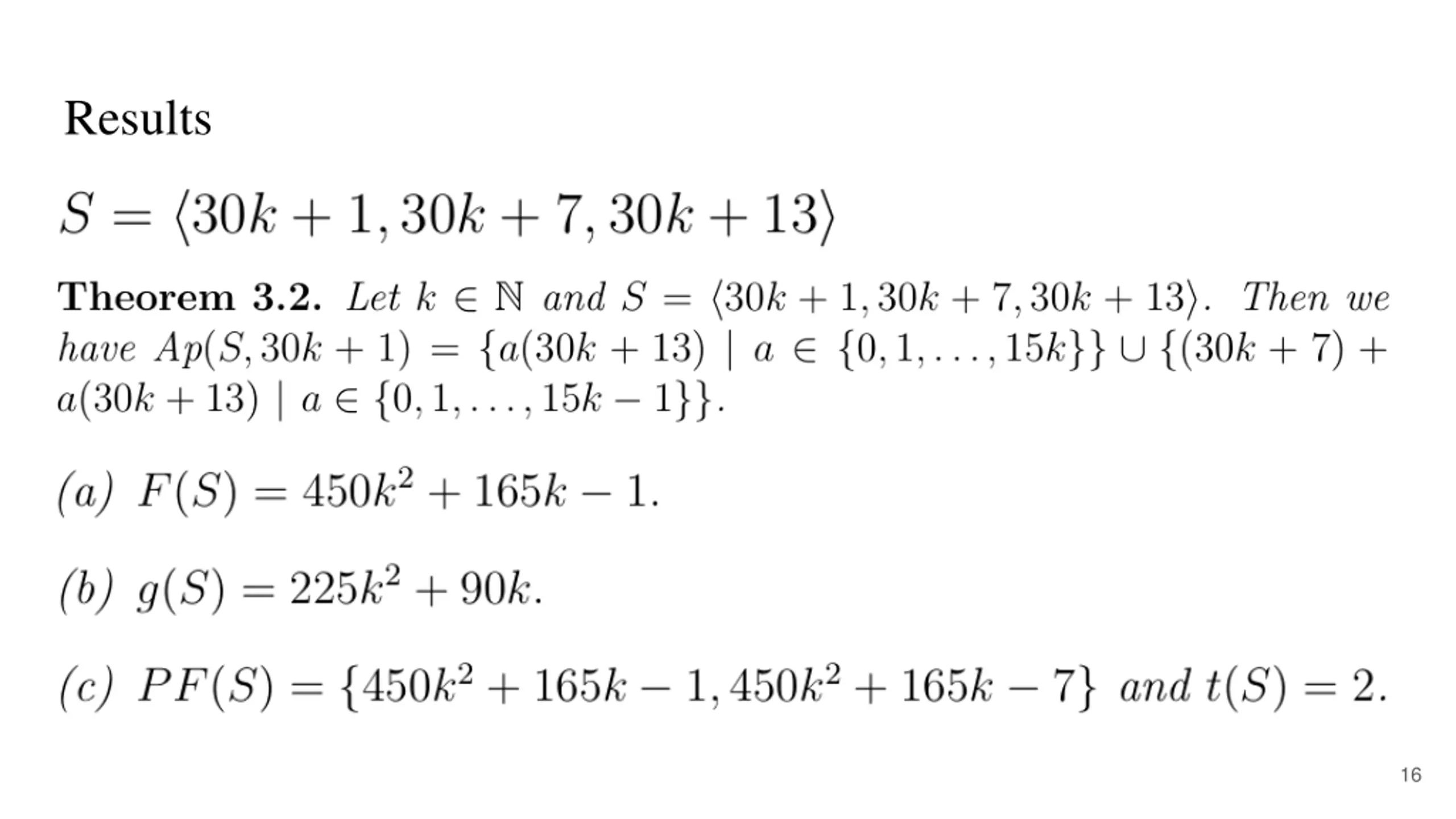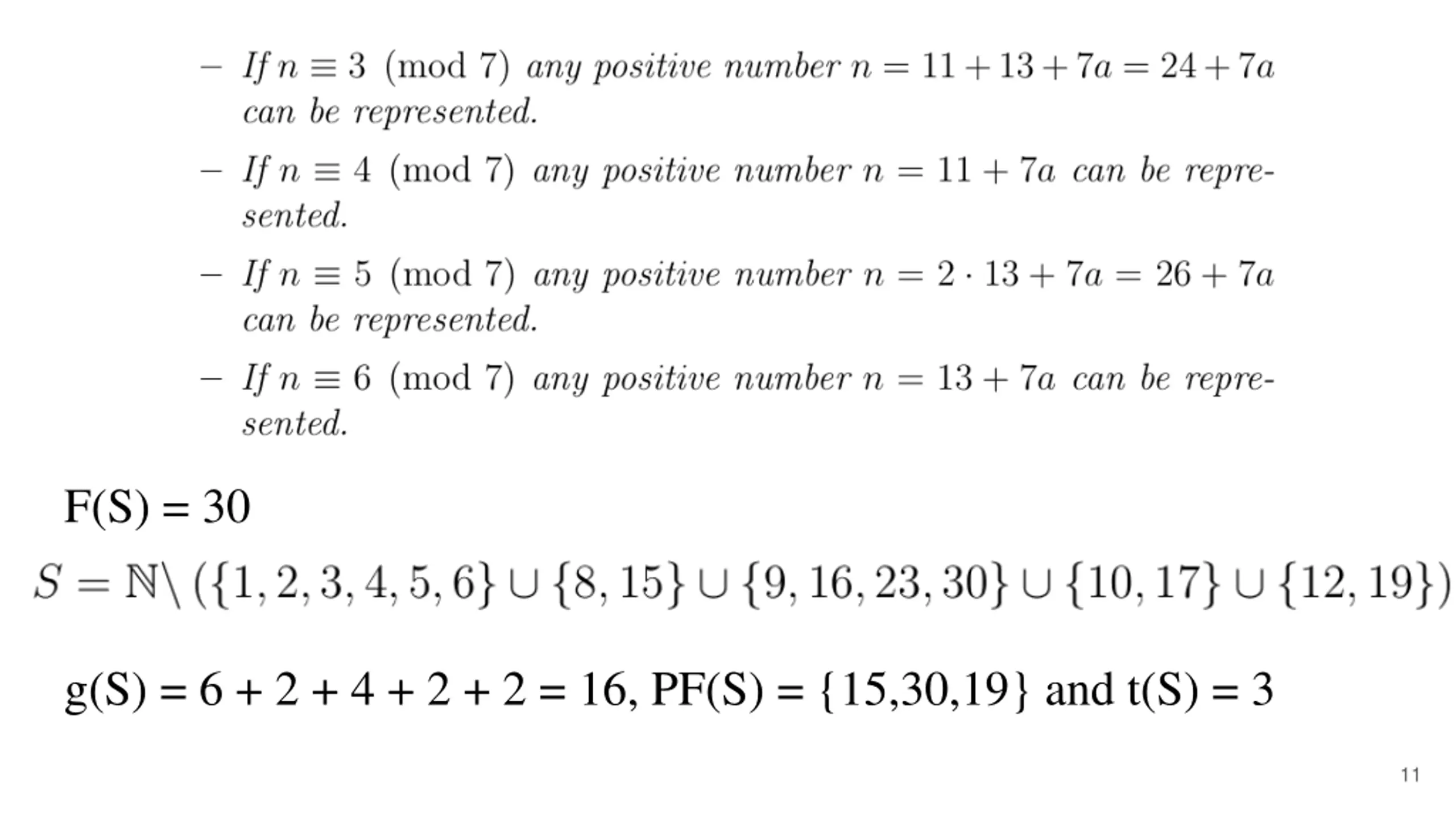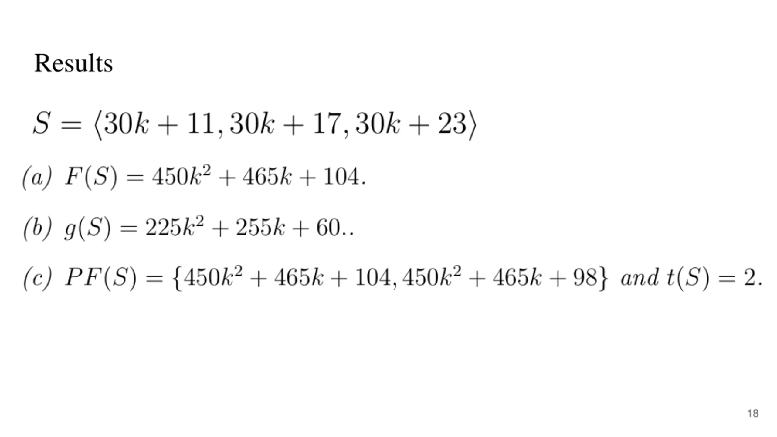 F(S) = 30 g(S) = 6 + 2 + 4 + 2 + 2 = 16, PF(S) = {15,30,19} and t(S) = 3 11