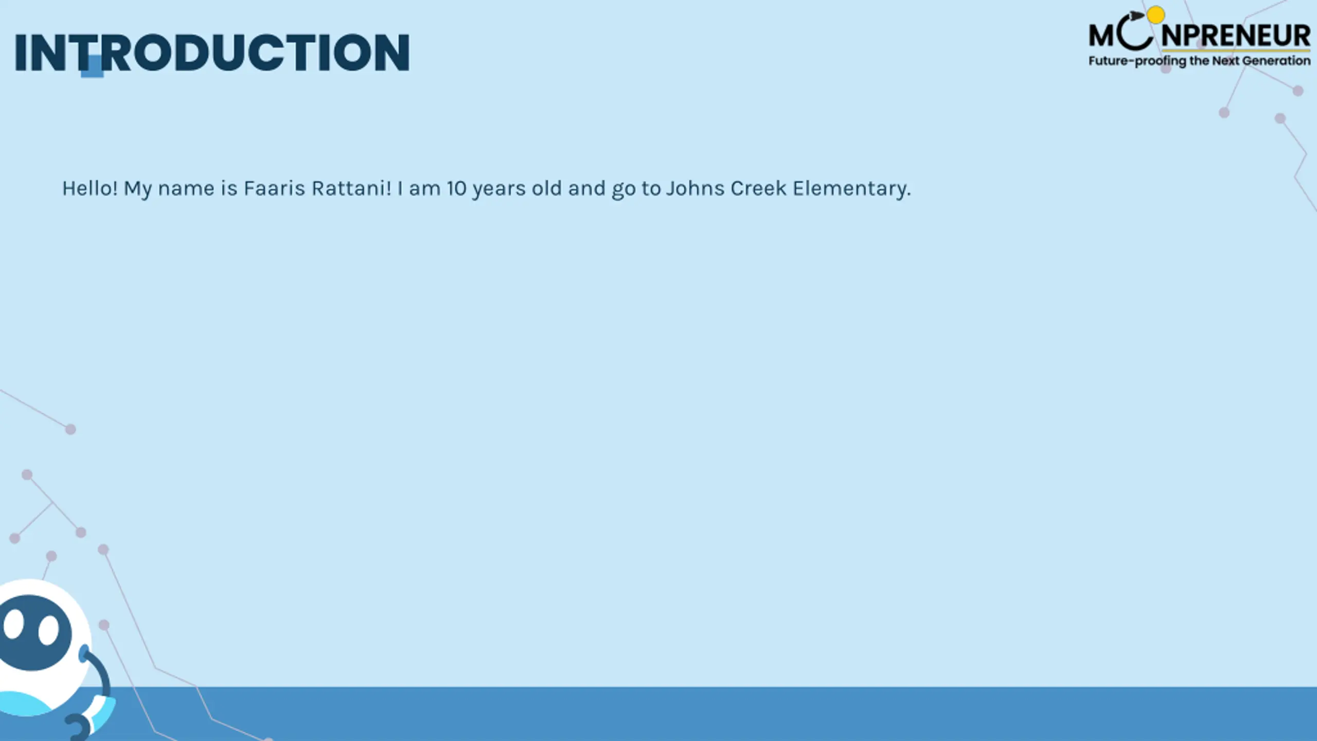 INTRODUCTION Hello! My name is Faaris Rattani! I am 10 years old and go to Johns Creek Elementary.