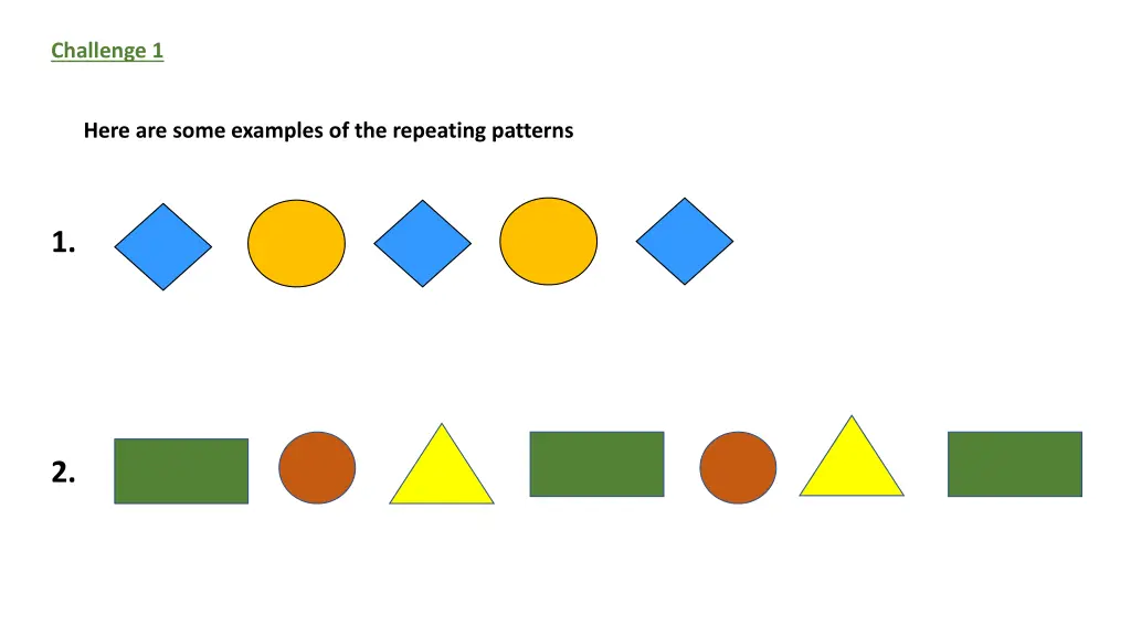 Challenge 1 Here are some examples of the repeating patterns 1. 2.