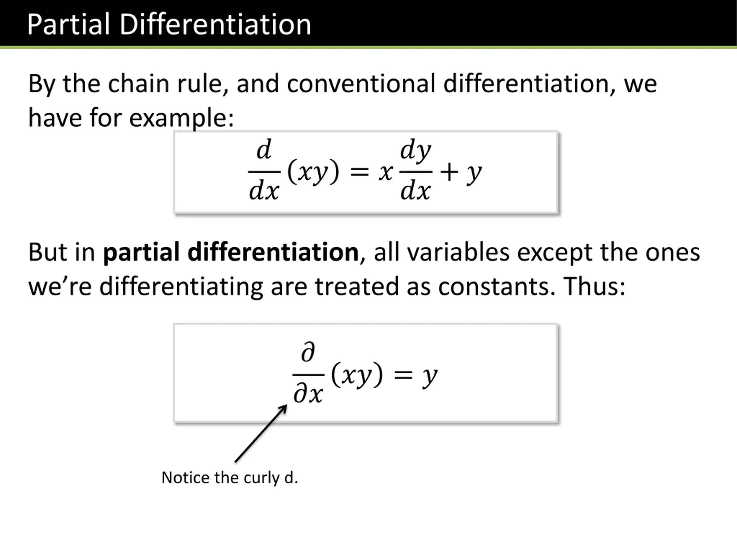 Partial Differentiation By the chain rule, and conventional differentiation, we have for example: ? ?? ?? = ??? ??+ ? But in partial differentiation, all variables except the ones we re differentiating are treated as constants. Thus: ? ?? ?? = ? Notice the curly d.