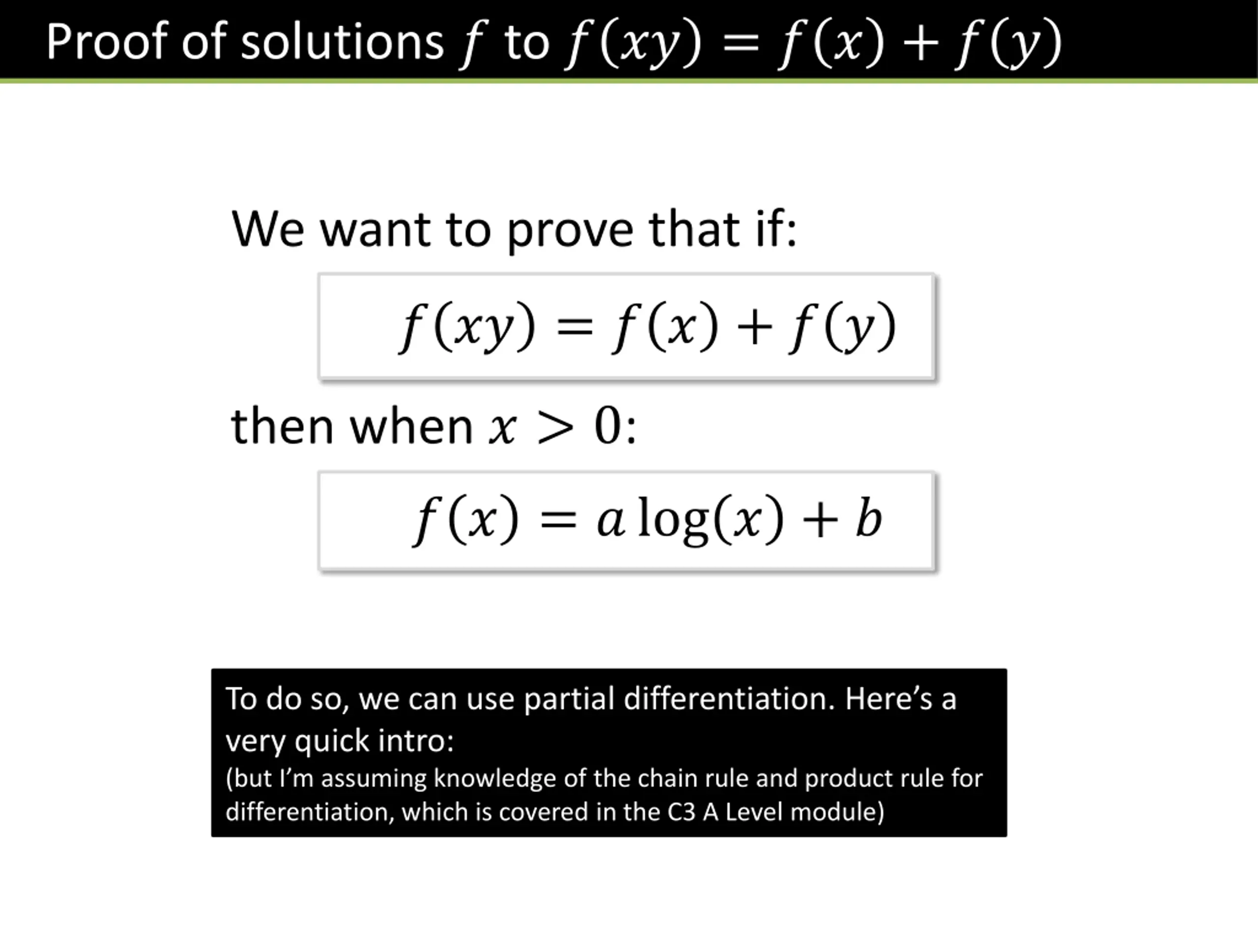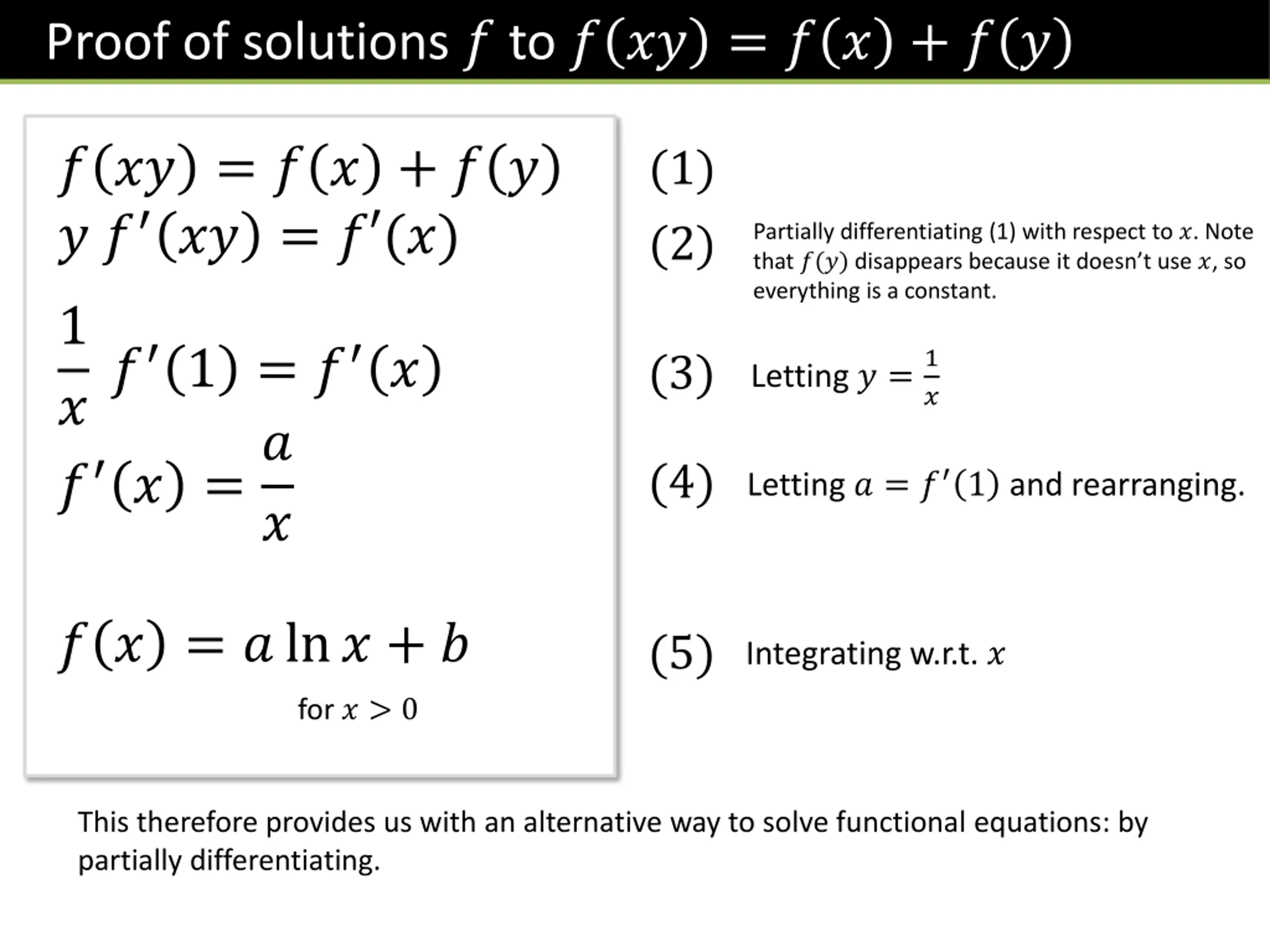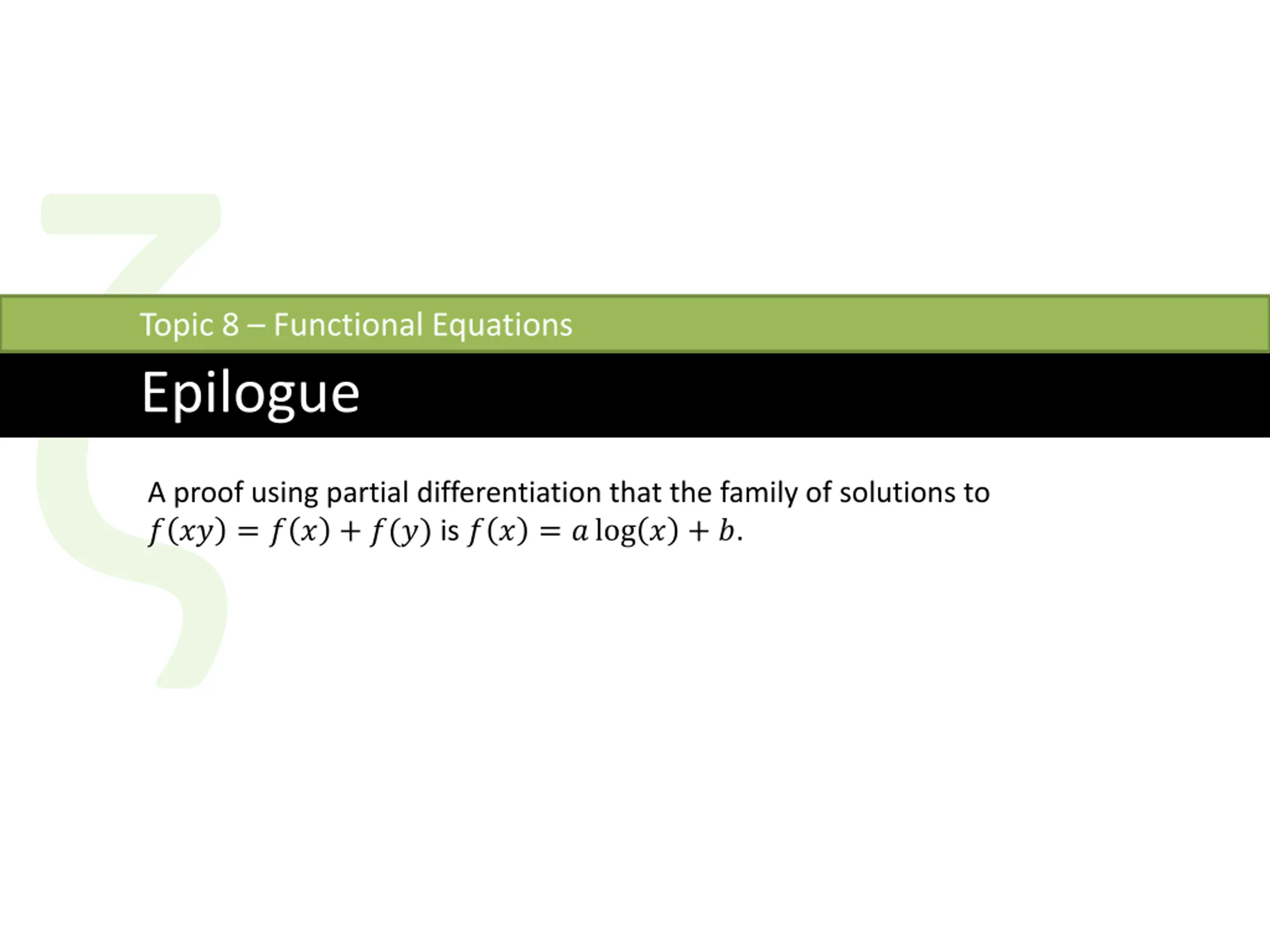Topic 8 Functional Equations Epilogue A proof using partial differentiation that the family of solutions to ? ?? = ? ? + ?(?) is ? ? = ?log ? + ?.