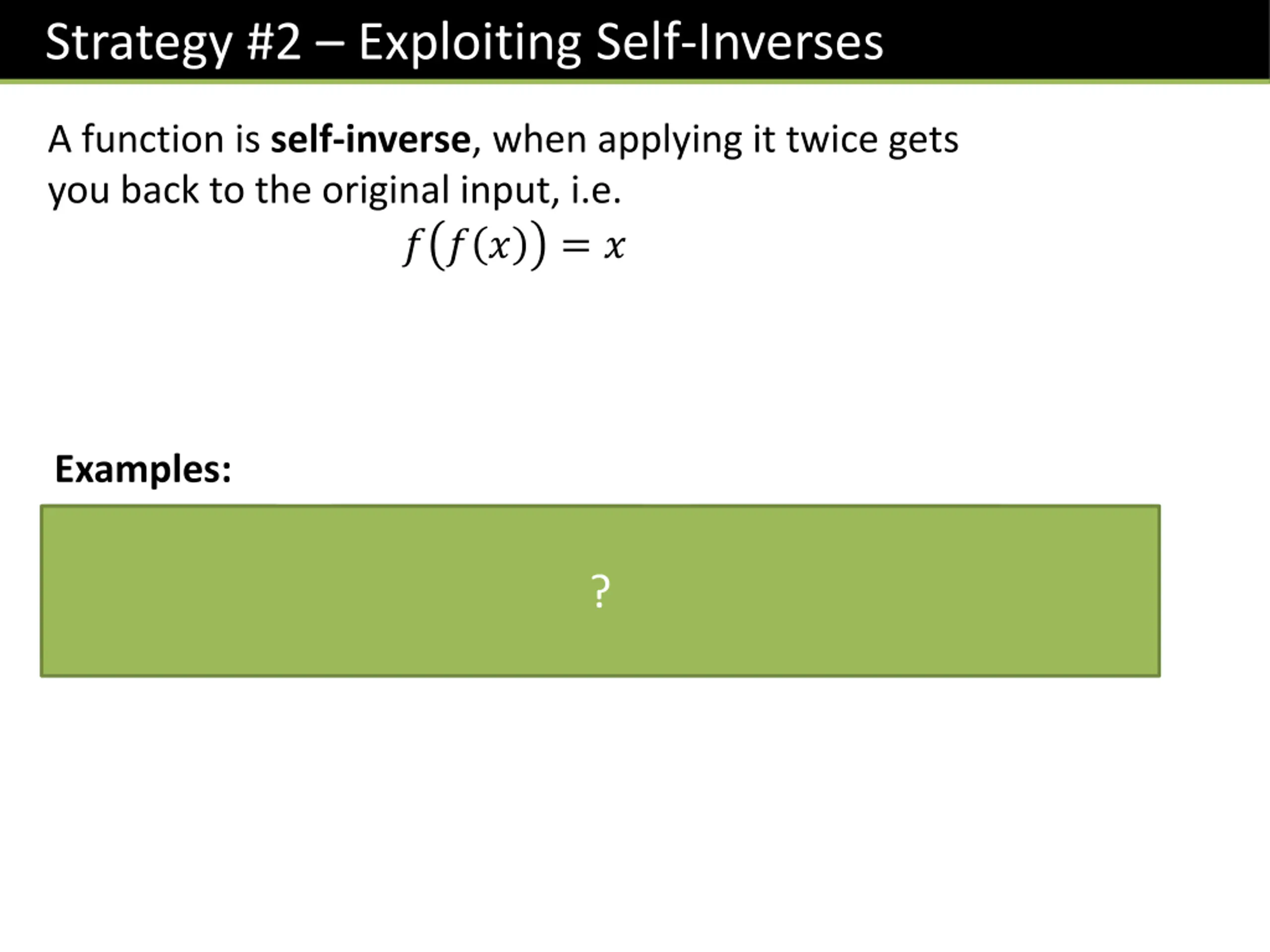 Strategy #2 Exploiting Self-Inverses A function is self-inverse, when applying it twice gets you back to the original input, i.e. ? ? ? = ? Examples: ? ? ? =? ? ? = ? ? ? ? = ? ? ? ?