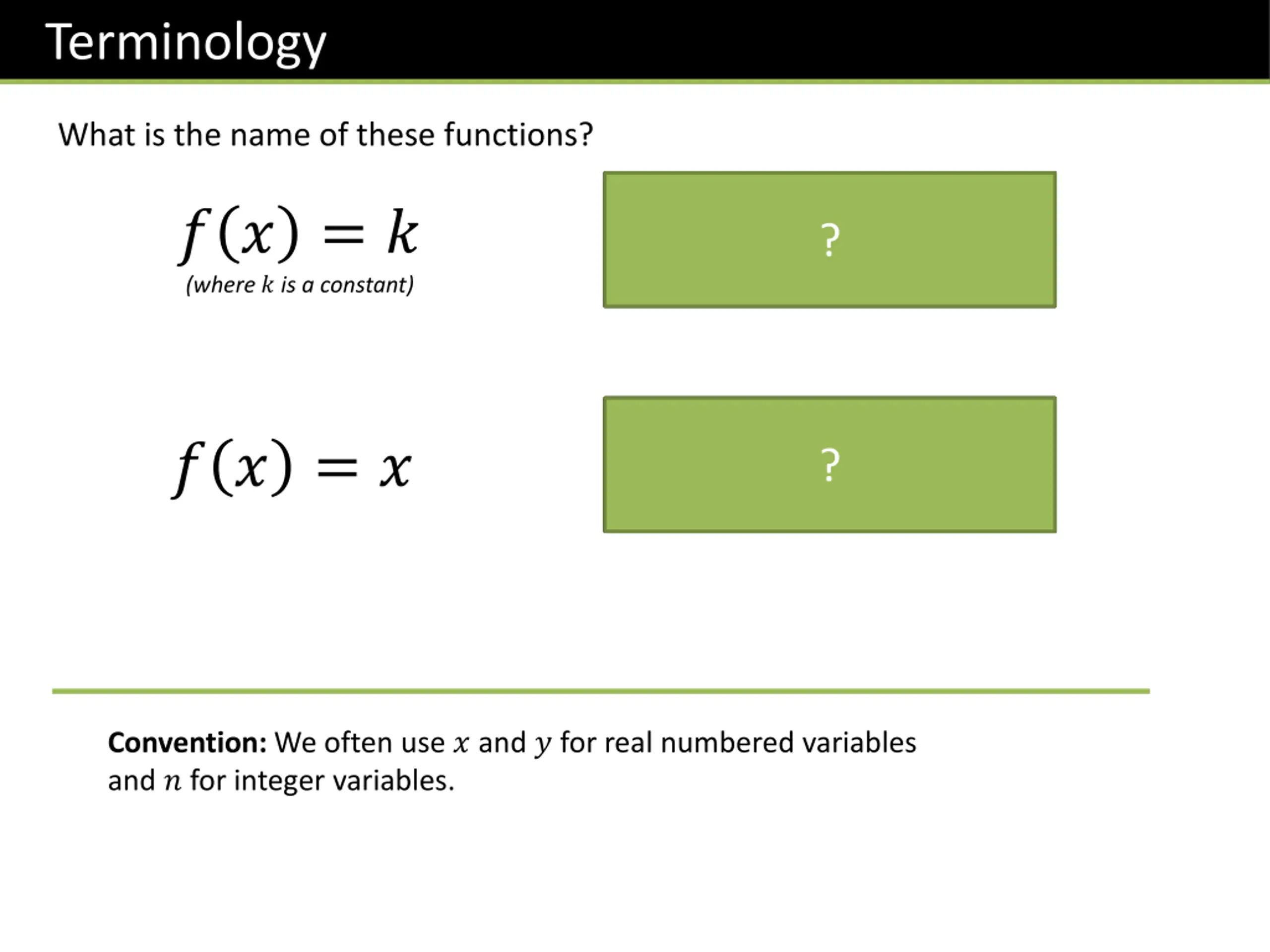 Terminology What is the name of these functions? ? ? = ? (where ? is a constant) Constant Function ? ? ? = ? Identity Function ? Convention: We often use ? and ? for real numbered variables and ? for integer variables.