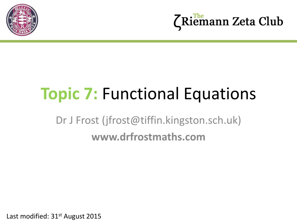 Topic 7: Functional Equations Dr J Frost (jfrost@tiffin.kingston.sch.uk) www.drfrostmaths.com Last modified: 31st August 2015