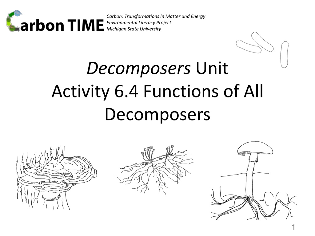 Carbon: Transformations in Matter and Energy Environmental Literacy Project Michigan State University Decomposers Unit Activity 6.4 Functions of All Decomposers 1