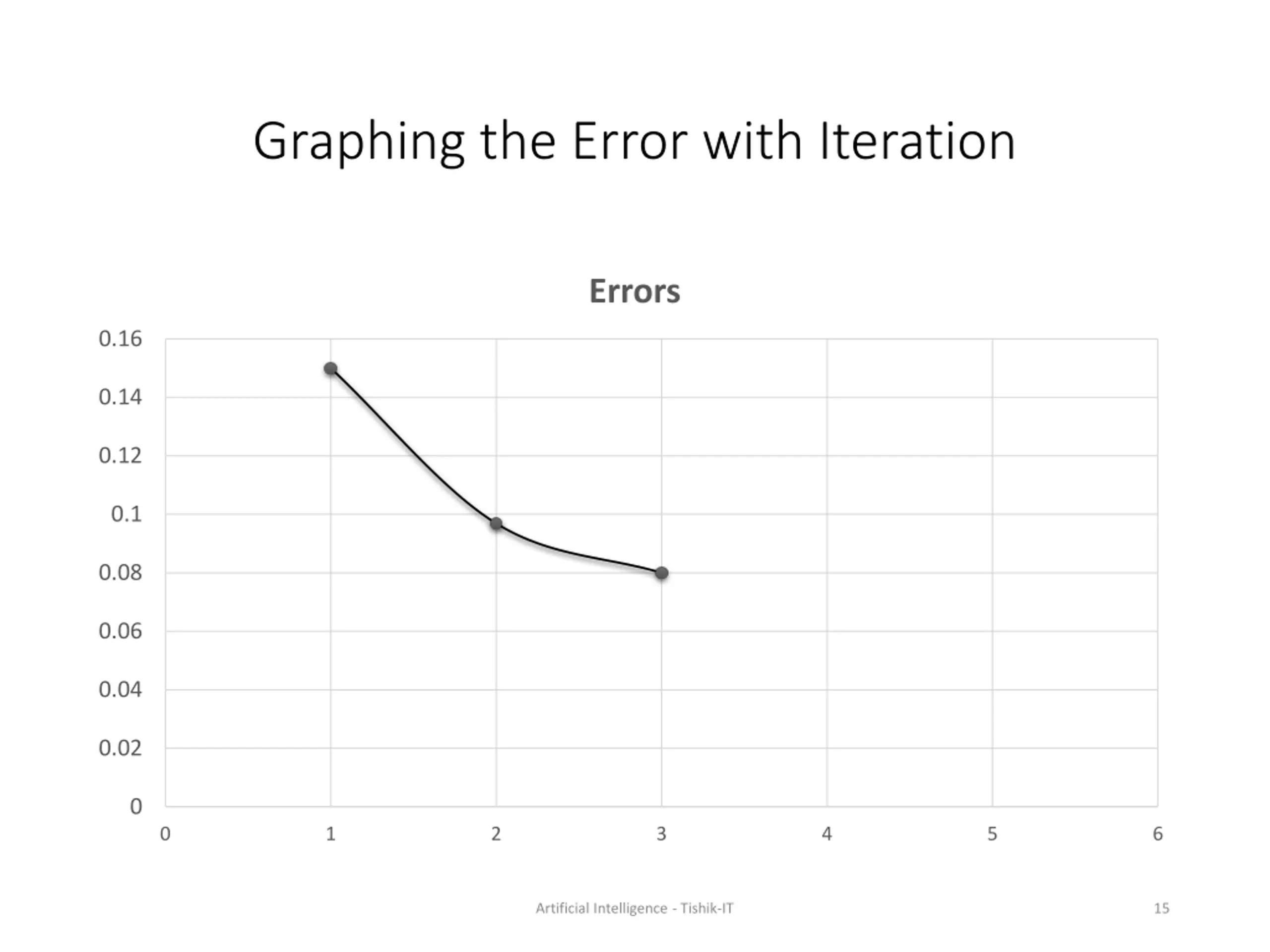 Graphing the Error with Iteration Errors 0.16 0.14 0.12 0.1 0.08 0.06 0.04 0.02 0 0 1 2 3 4 5 6 Artificial Intelligence - Tishik-IT 15