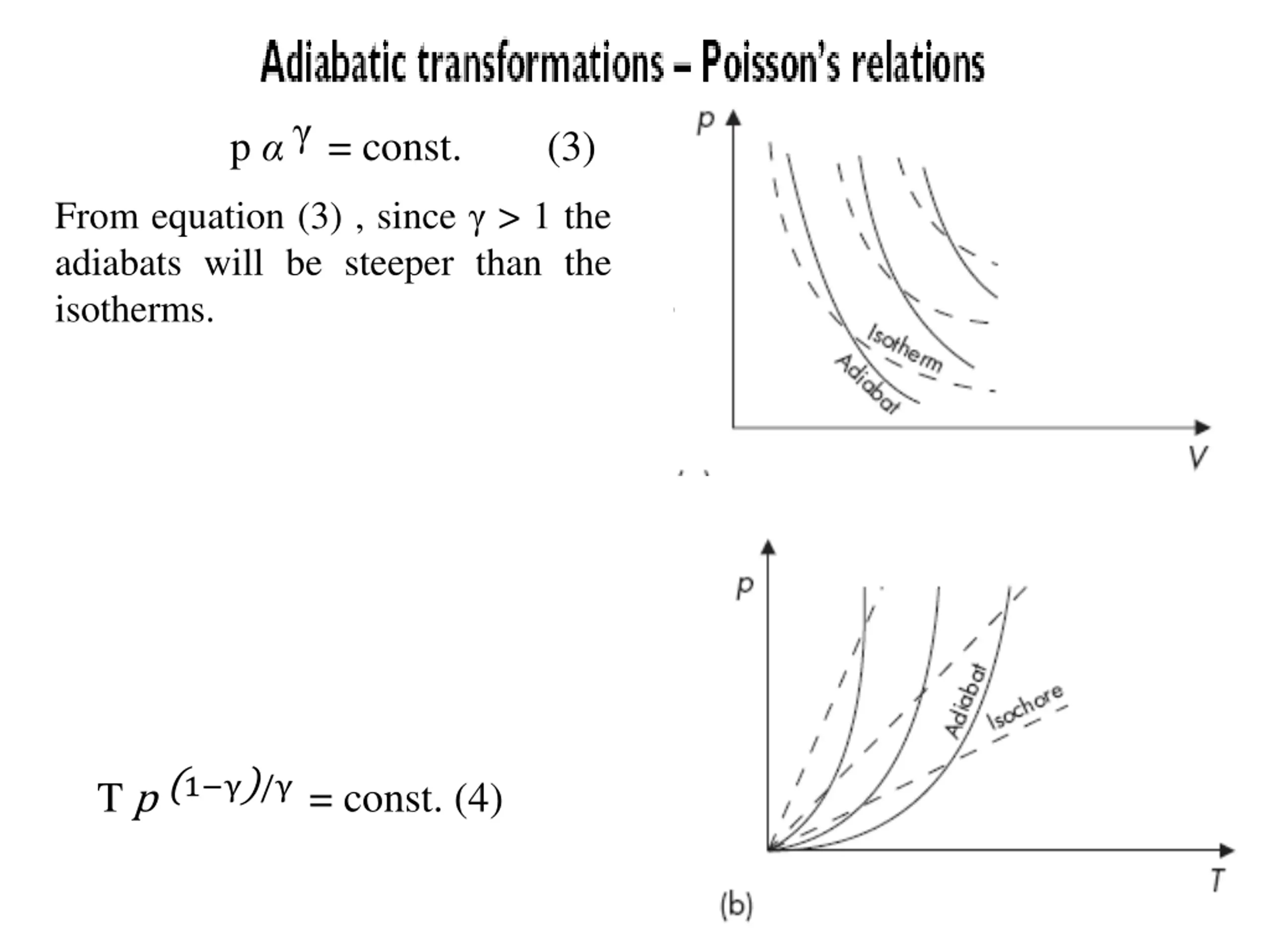 p = const. (3) From equation (3) , since > 1 the adiabats will be steeper than the isotherms. T p (1 )/ = const. (4)