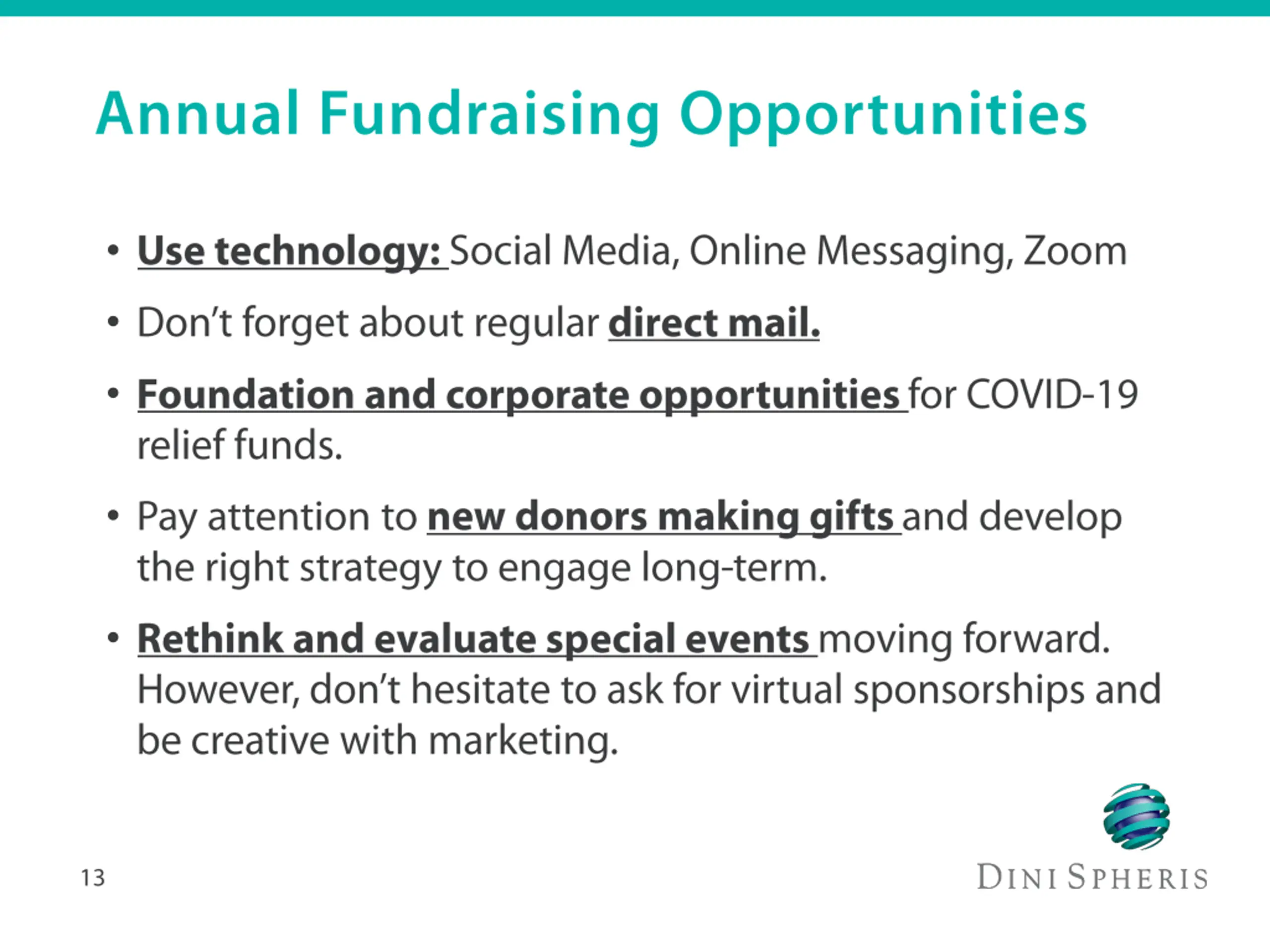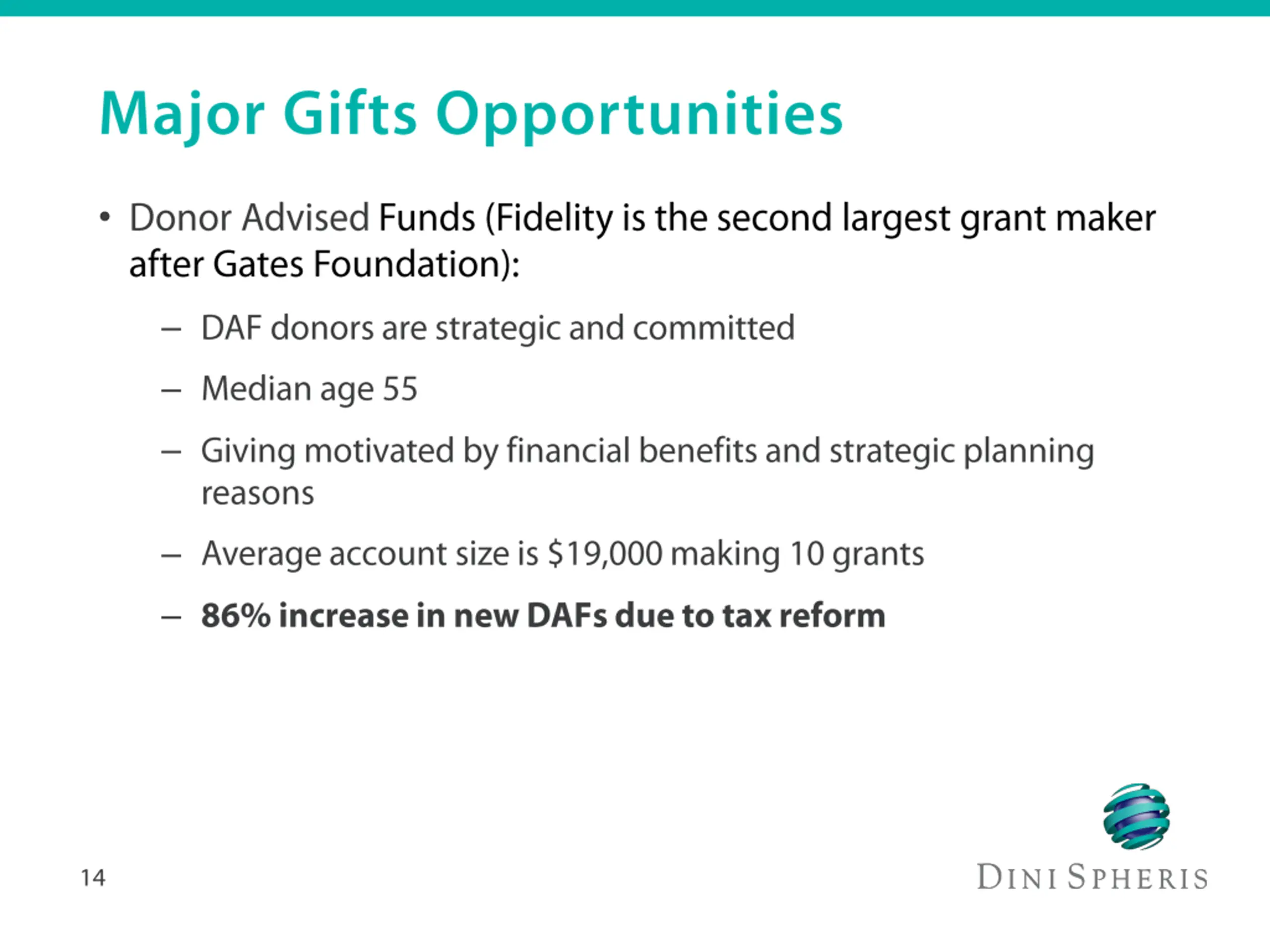 Audience Individuals Foundations Corporations Funding Area Program(s) Capital Endowment Fundraising Method Peer-to-Peer Events Direct Mail Social Media/Web Funding Vehicles Cash Credit Card Donor Advised Funds Planned Gifts Donor Cycle Identification Discovery Cultivation Solicitation Stewardship