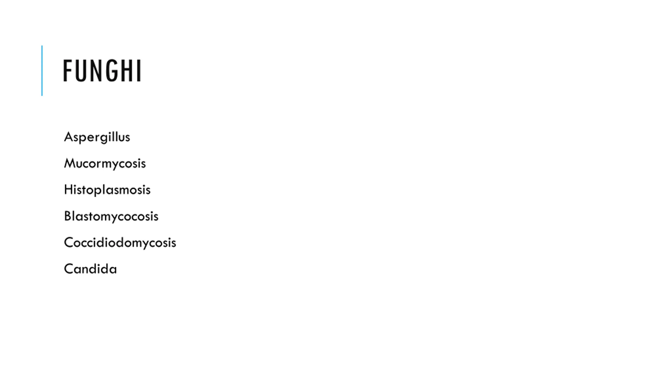 FUNGHI Aspergillus Mucormycosis Histoplasmosis Blastomycocosis Coccidiodomycosis Candida
