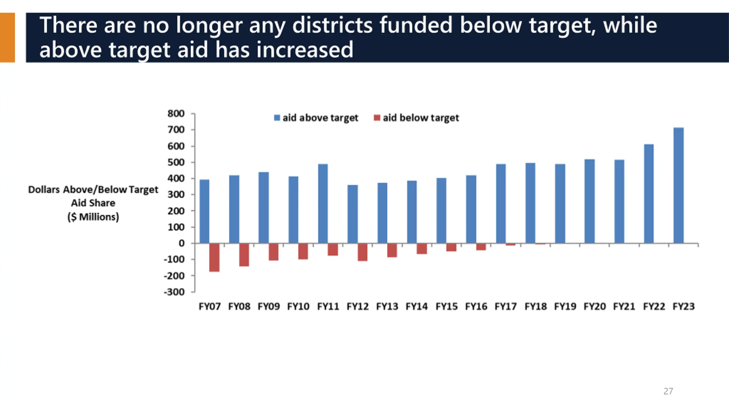 The updated formula includes three parameters to be specified in each year s general appropriations act For FY23, these are specified as: oTotal state target local contribution = 59% oEffort reduction = 100% oMinimum aid = $60 per pupil 14
