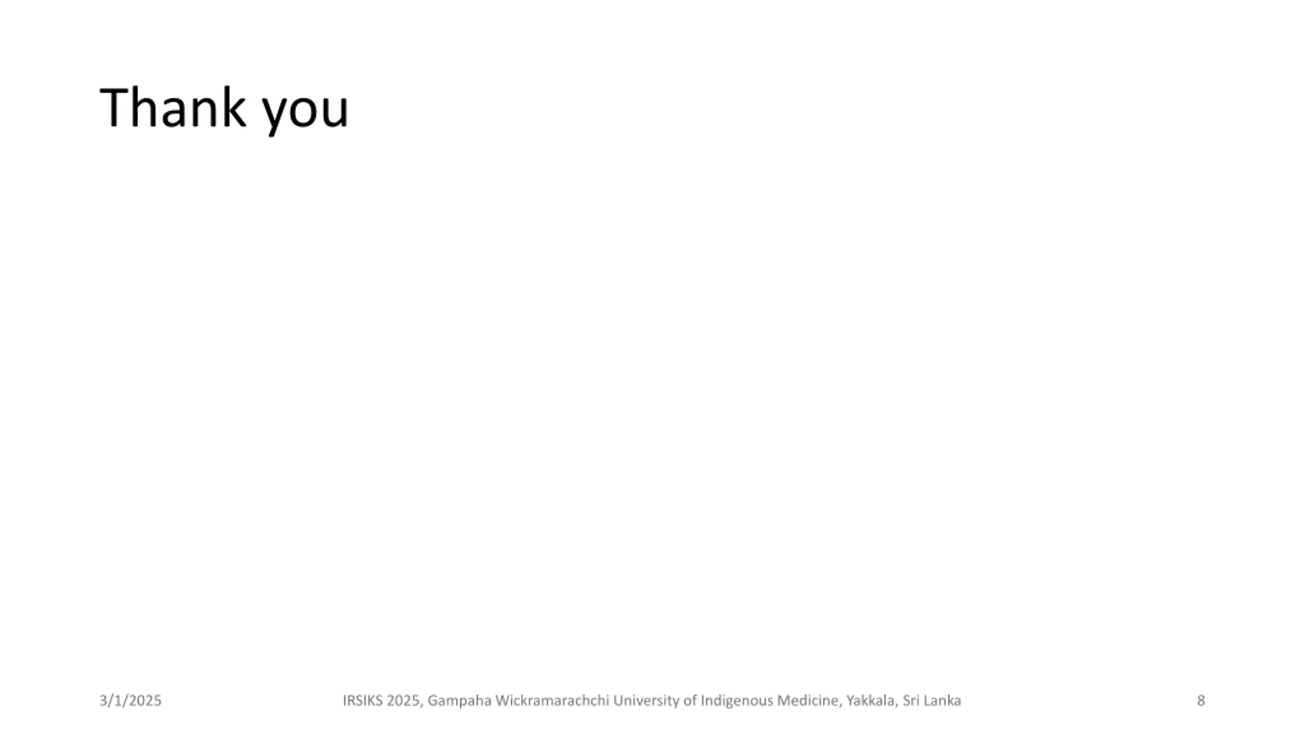 Thank you 3/1/2025 IRSIKS 2025, Gampaha Wickramarachchi University of Indigenous Medicine, Yakkala, Sri Lanka 8