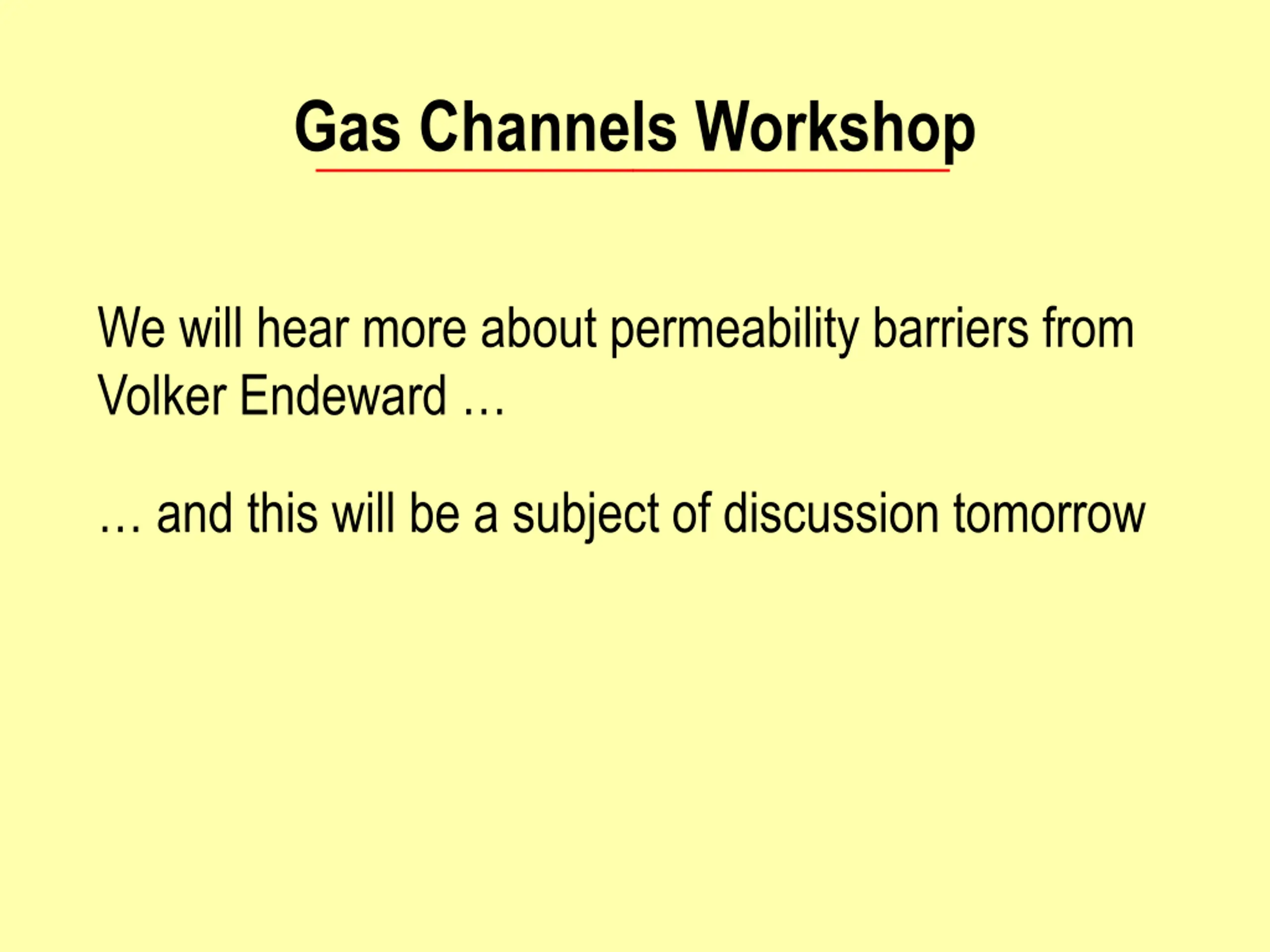 Gas Channels Workshop We will hear more about permeability barriers from Volker Endeward and this will be a subject of discussion tomorrow