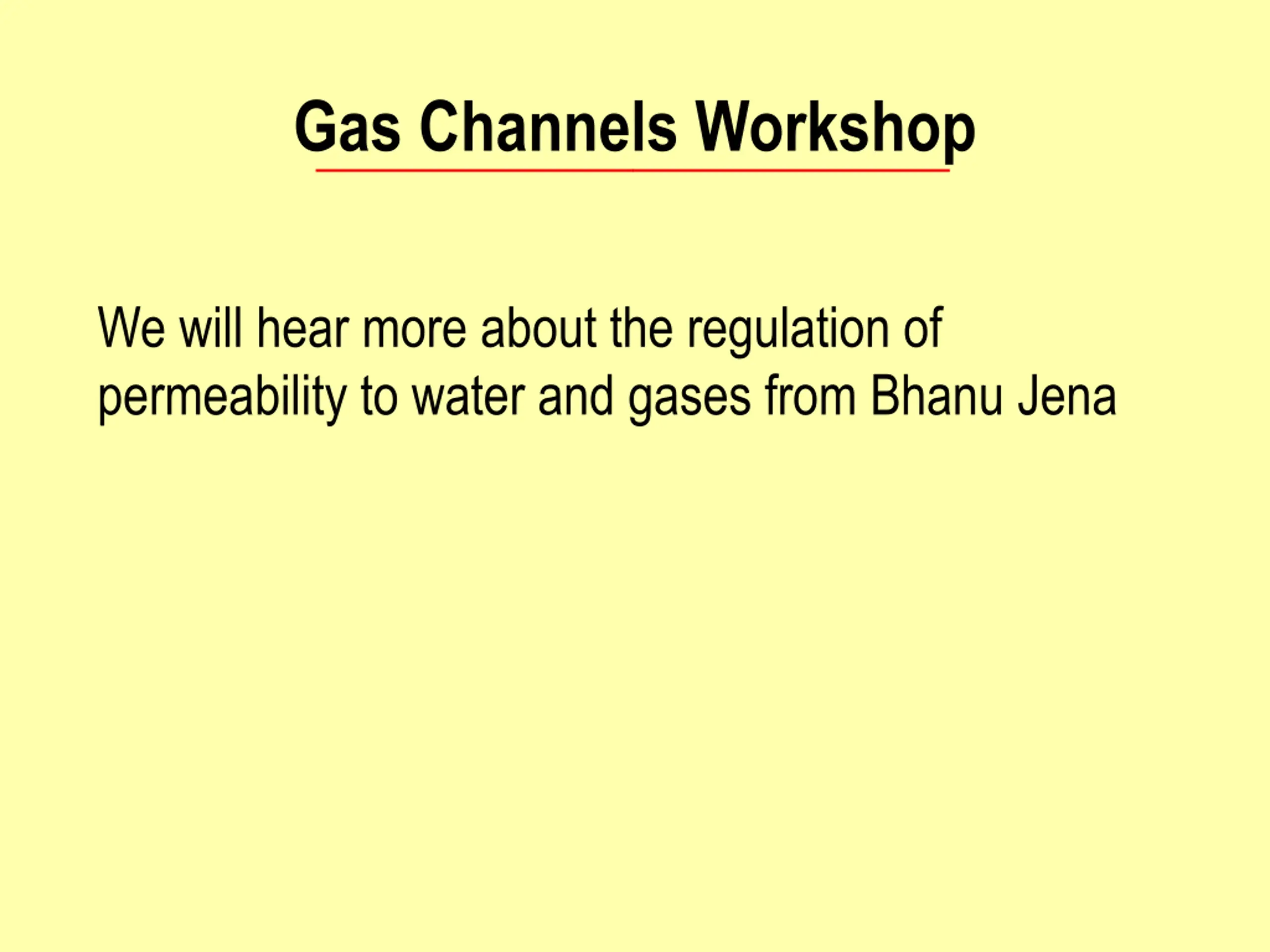 Gas Channels Workshop We will hear more about the regulation of permeability to water and gases from Bhanu Jena