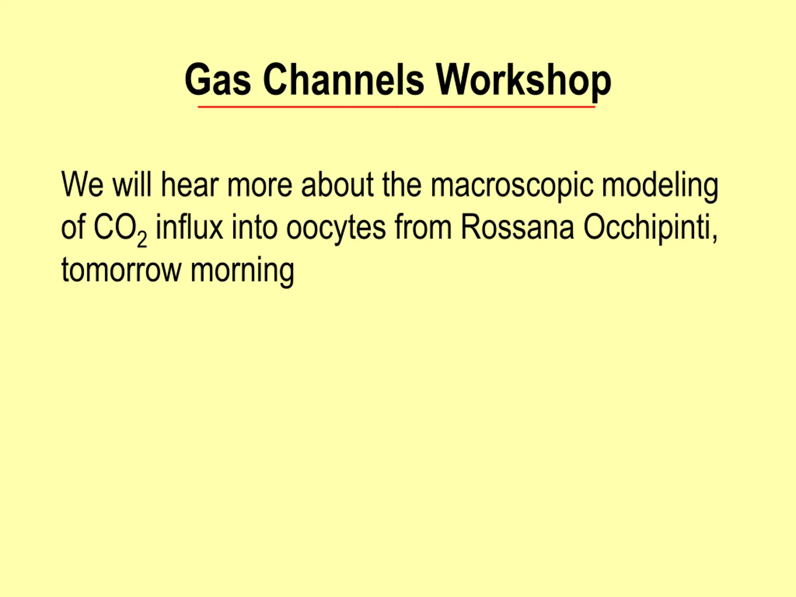 Gas Channels Workshop We will hear more about the macroscopic modeling of CO2 influx into oocytes from Rossana Occhipinti, tomorrow morning