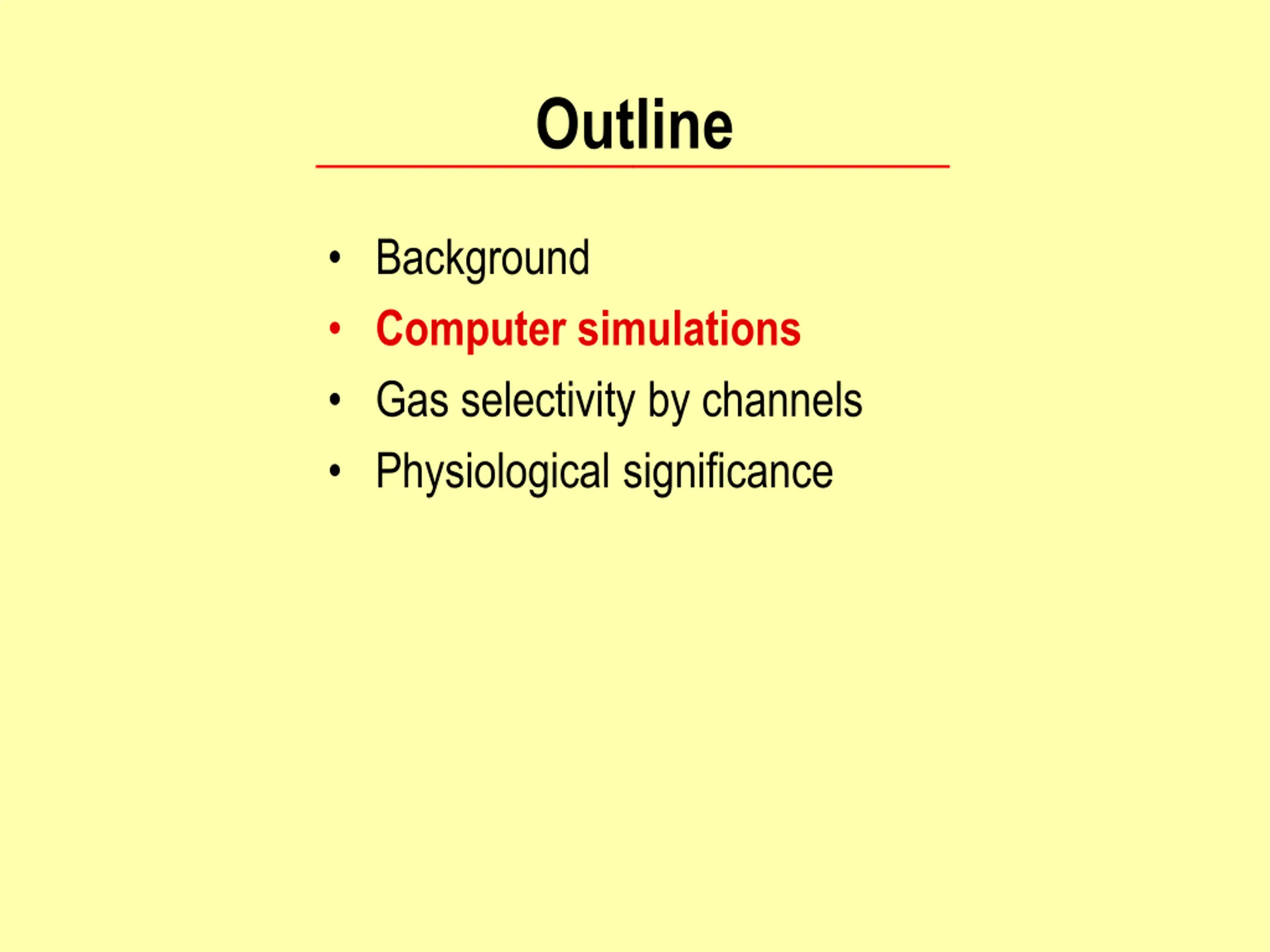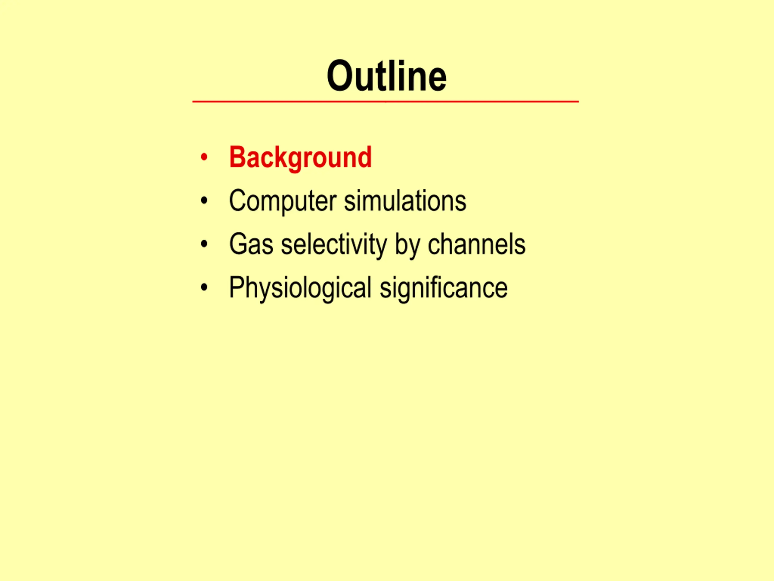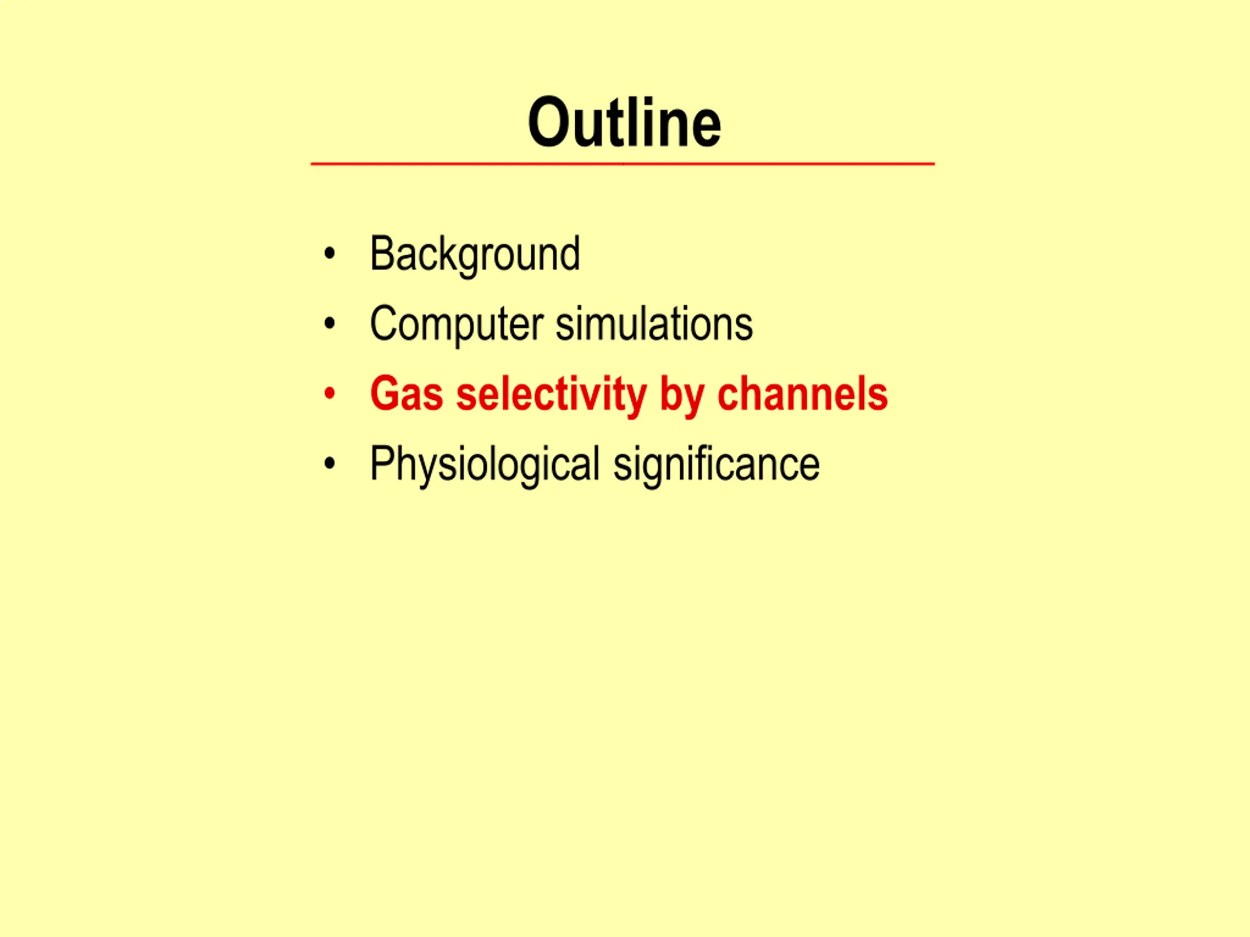 Outline Background Computer simulations Gas selectivity by channels Physiological significance