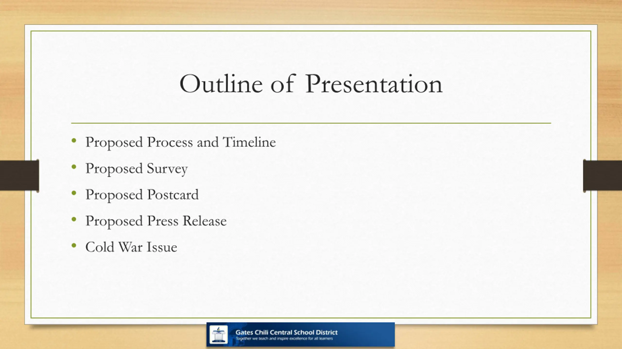 Outline of Presentation Proposed Process and Timeline Proposed Survey Proposed Postcard Proposed Press Release Cold War Issue