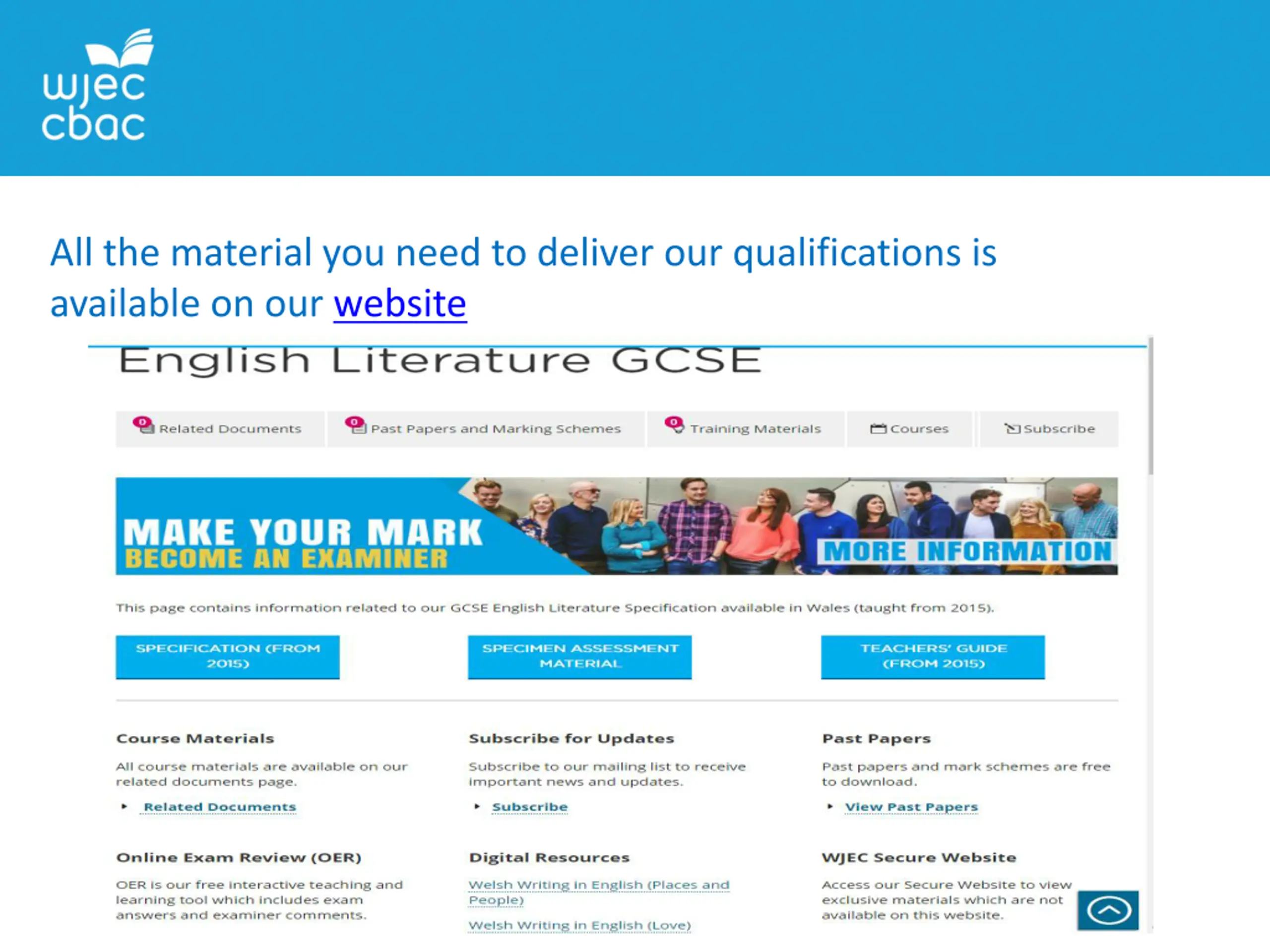 All the material you need to deliver our qualifications is available on our website