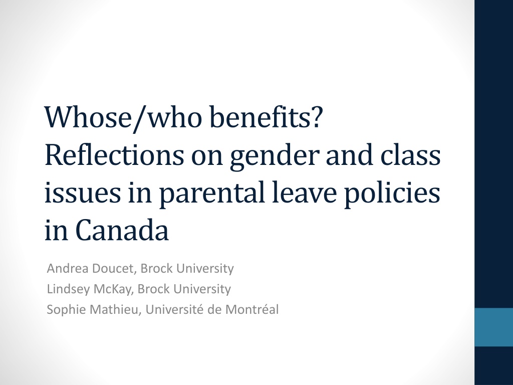 Whose/who benefits? Reflections on gender and class issues in parental leave policies in Canada Andrea Doucet, Brock University Lindsey McKay, Brock University Sophie Mathieu, Universit de Montr al
