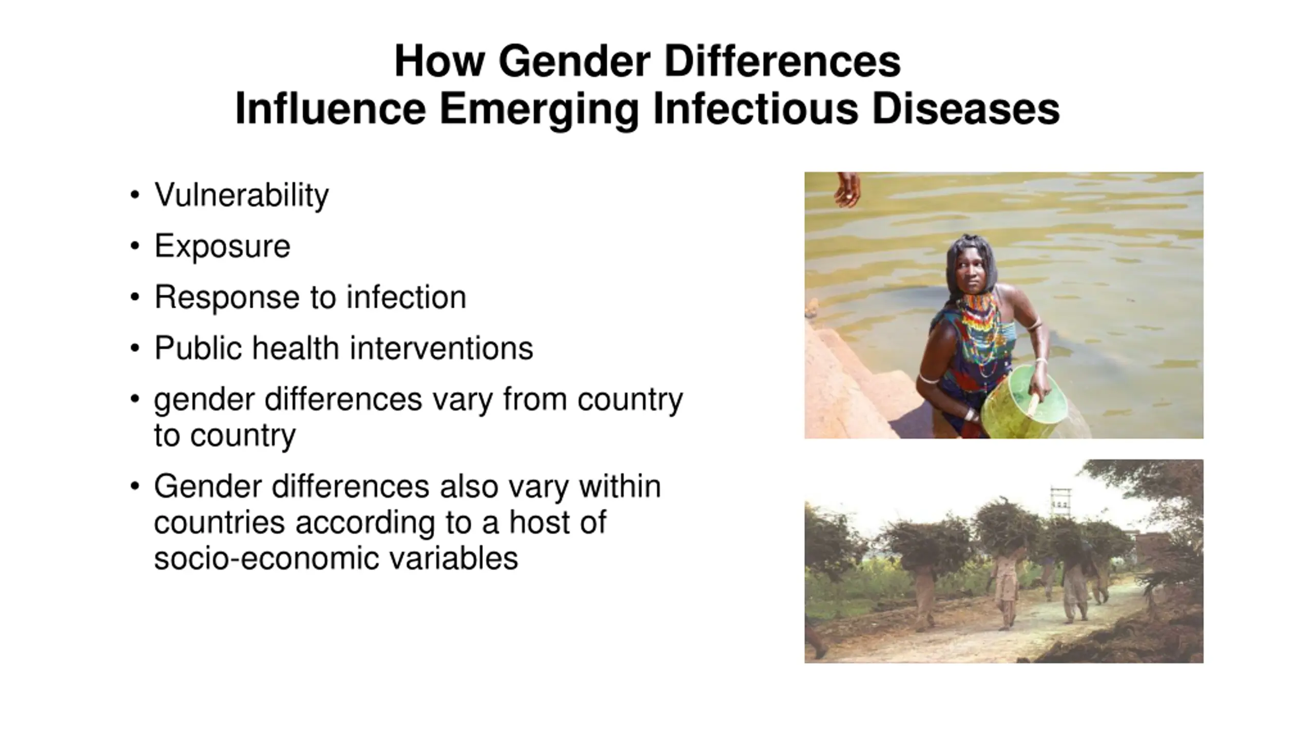 How Gender Differences Influence Emerging Infectious Diseases Vulnerability Exposure Response to infection Public health interventions gender differences vary from country to country Gender differences also vary within countries according to a host of socio-economic variables