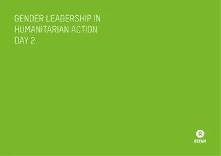Slide 11 What action is needed to strengthen women s leadership in humanitarian action? direct funding to women s rights organizations for preparedness, response, advocacy and core admin costs; scale up training opportunities for local women leaders in emergency preparedness and response; commitment to gender parity in all community-led, national and international representation structures overseeing emergency preparedness and response; establishing a mechanism within the UN humanitarian coordination system that focuses on gender equality in humanitarian response, including engagement of women s rights organizations.