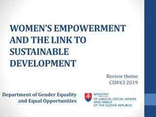 Slide 5 Women s empowerment can take place in different interdependent spheres Achieving transformational change in power relations between women and men means working across all these interdependent dimensions of women s empowerment in a holistic way: economic; social; political; personal; legal.