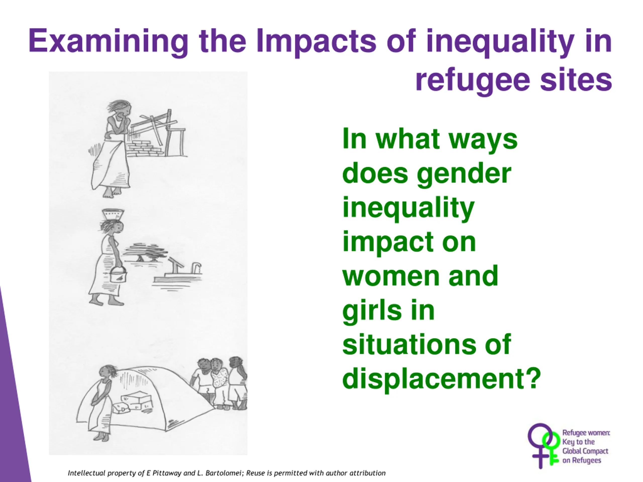 Examining the Impacts of inequality in refugee sites In what ways does gender inequality impact on women and girls in situations of displacement? Intellectual property of E Pittaway and L. Bartolomei; Reuse is permitted with author attribution