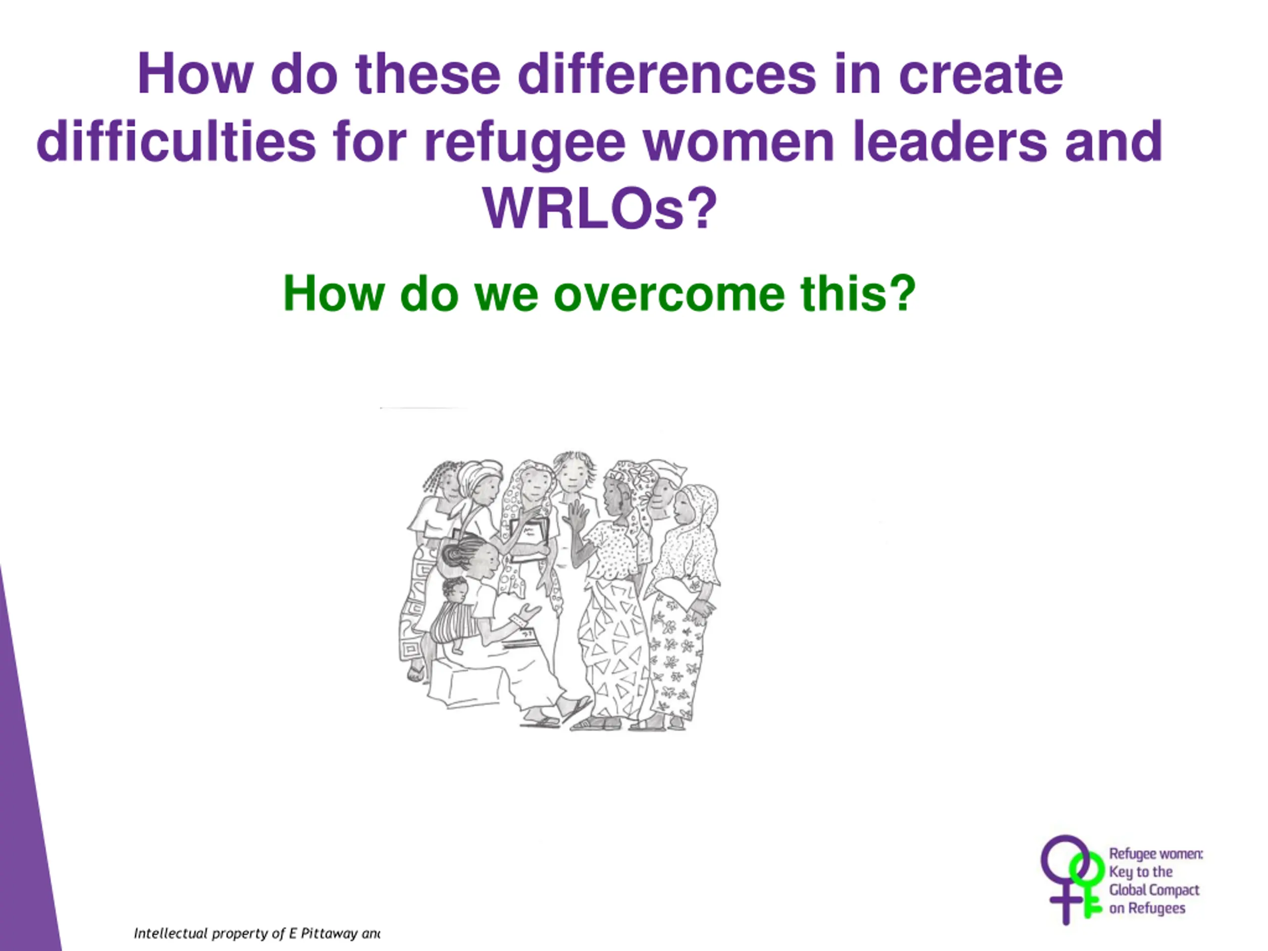 How do these differences in create difficulties for refugee women leaders and WRLOs? How do we overcome this? Intellectual property of E Pittaway and L. Bartolomei; Reuse is permitted with author attribution