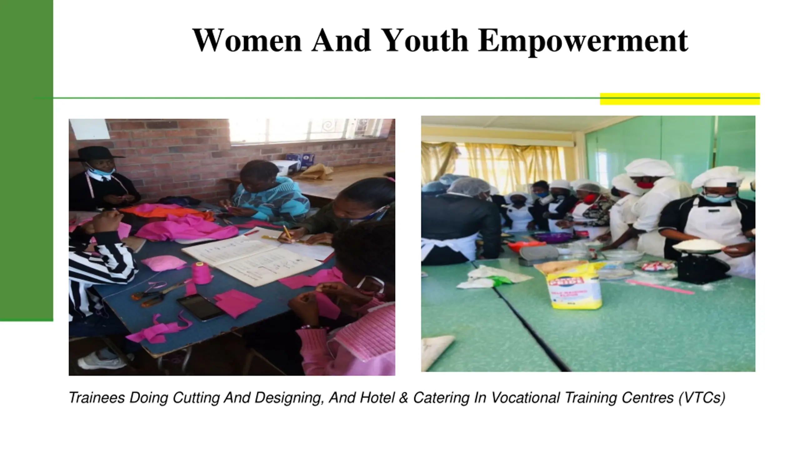 Women And Youth Empowerment Trainees Doing Cutting And Designing, And Hotel & Catering In Vocational Training Centres (VTCs)